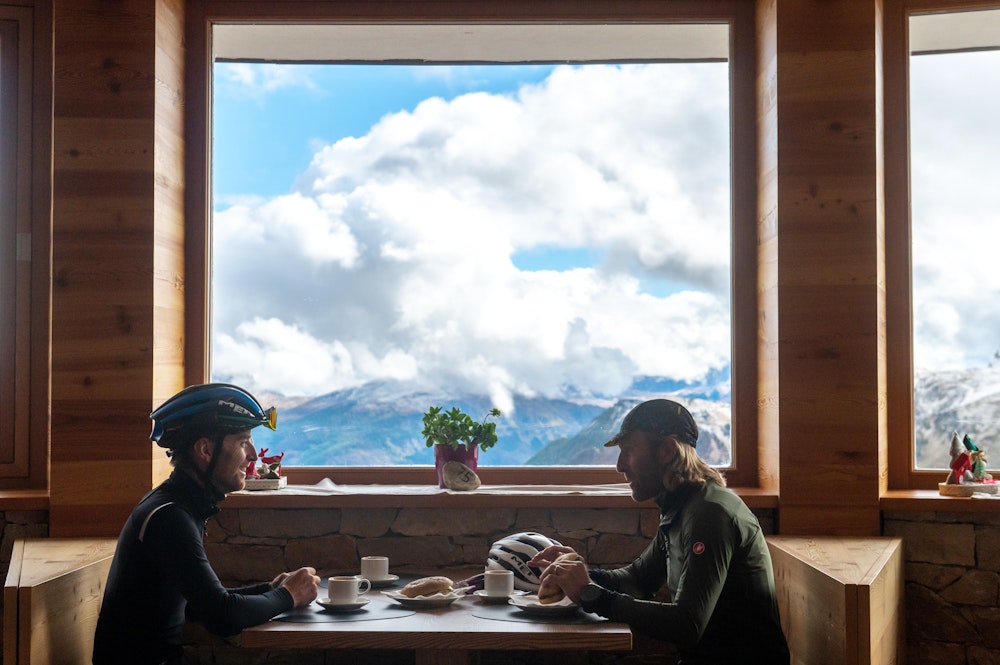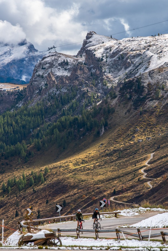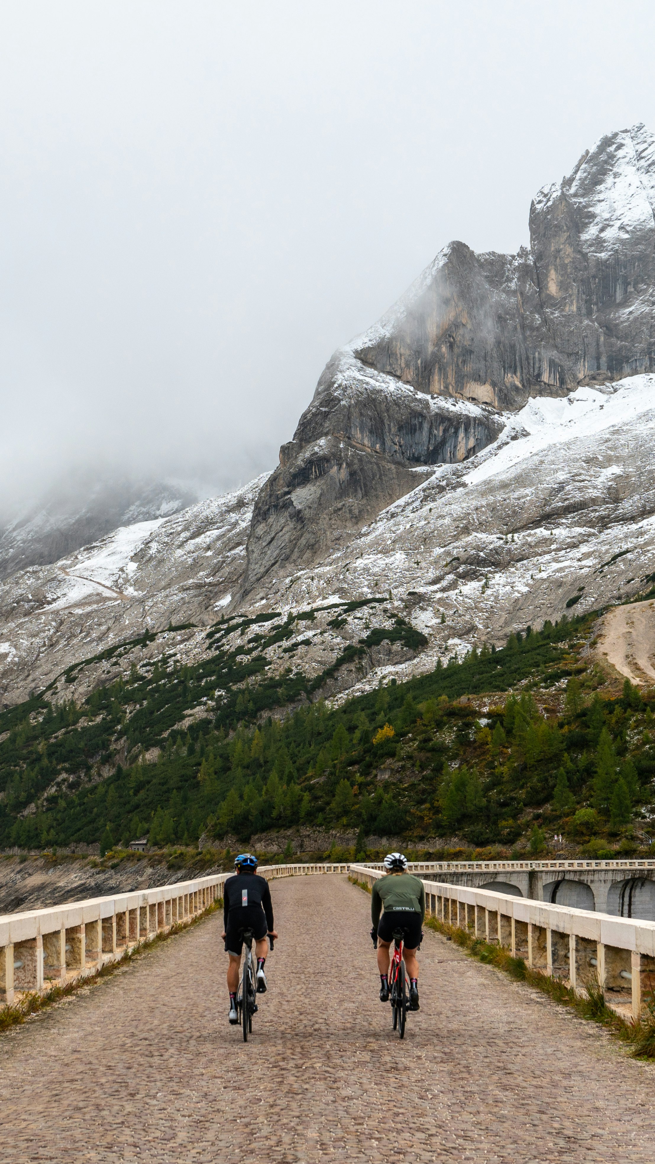 And it’s in Alta Badia where we spent two days on our bicycles — two loops, both 100 kilometres in length with over 3,000 metres of elevation gain. On the first day we rode around the Puez Odle nature park, before descending through the Funes valley to the Isarco river. Then we climbed along the Gardena valley towards Gardena Pass and descended again to Colfosco and Corvara. The second day, we tackled in sequence some of the most historic Dolomite passes; Campolongo, Pordoi, Fedaia, Falzarego and Valparola, all whilst drinking in the awe-inspiring views and sumptuous landscapes.