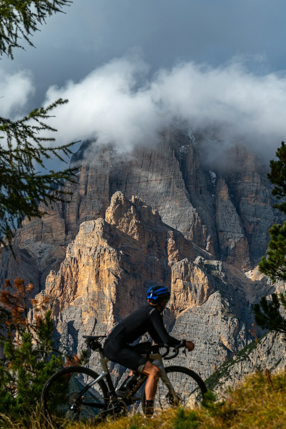The Falzarego climb is one of the most beautiful ever — an incomparable giant. The gradient is steady, though not as tough as the Giau, with the scent of pine in the air. To the left is a fortress, the Andraz Castle, a historical testament to a past that cannot be forgotten. It is an expression of the local heritage linked to the Ladin area of the upper Agordino region. Above, the Col di Lana, the absurd theatre of an absurd war. More than 100 years later, it is still possible to hear the whispers of thousands of young men torn from their lands, sent here to never return.