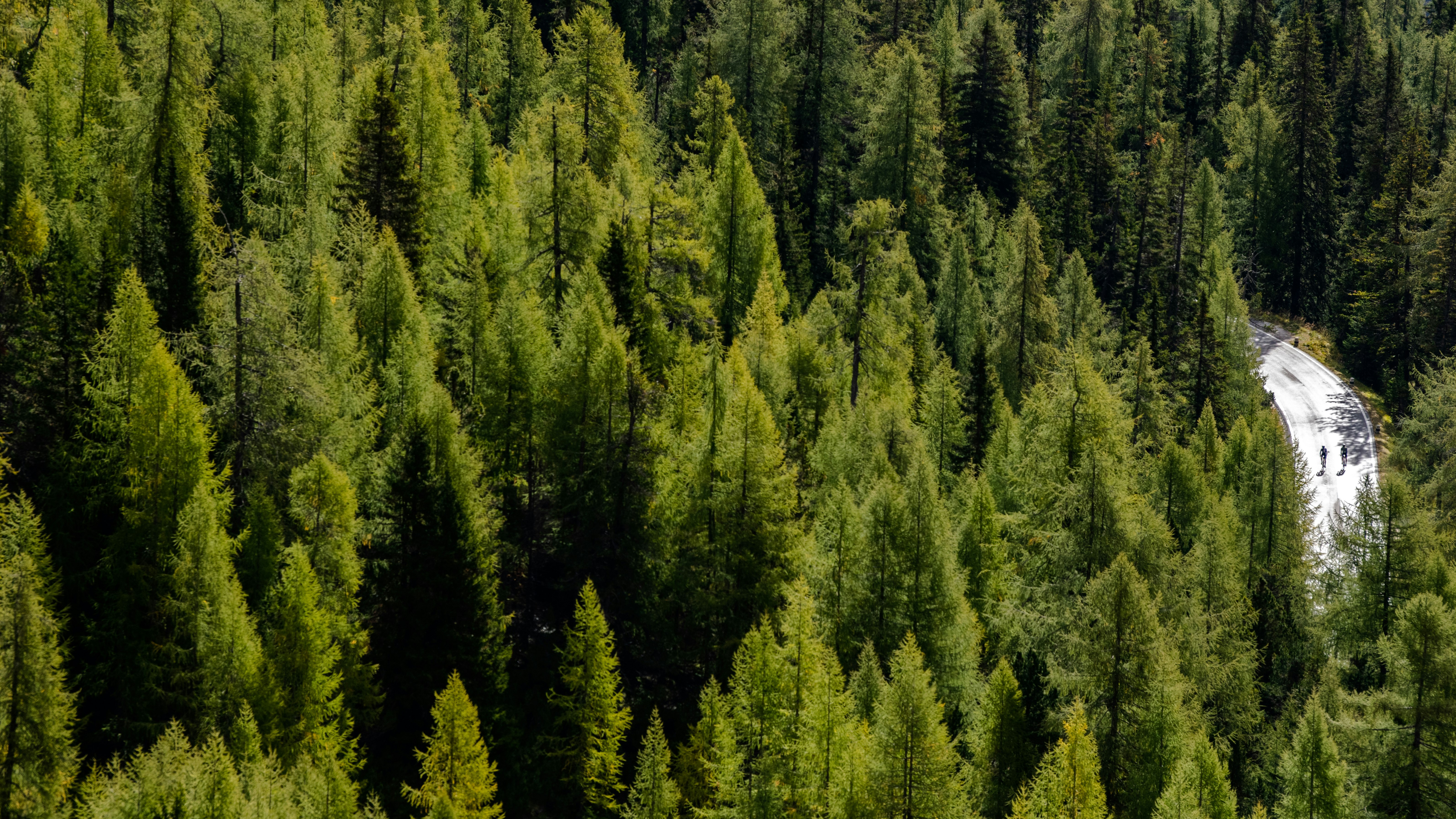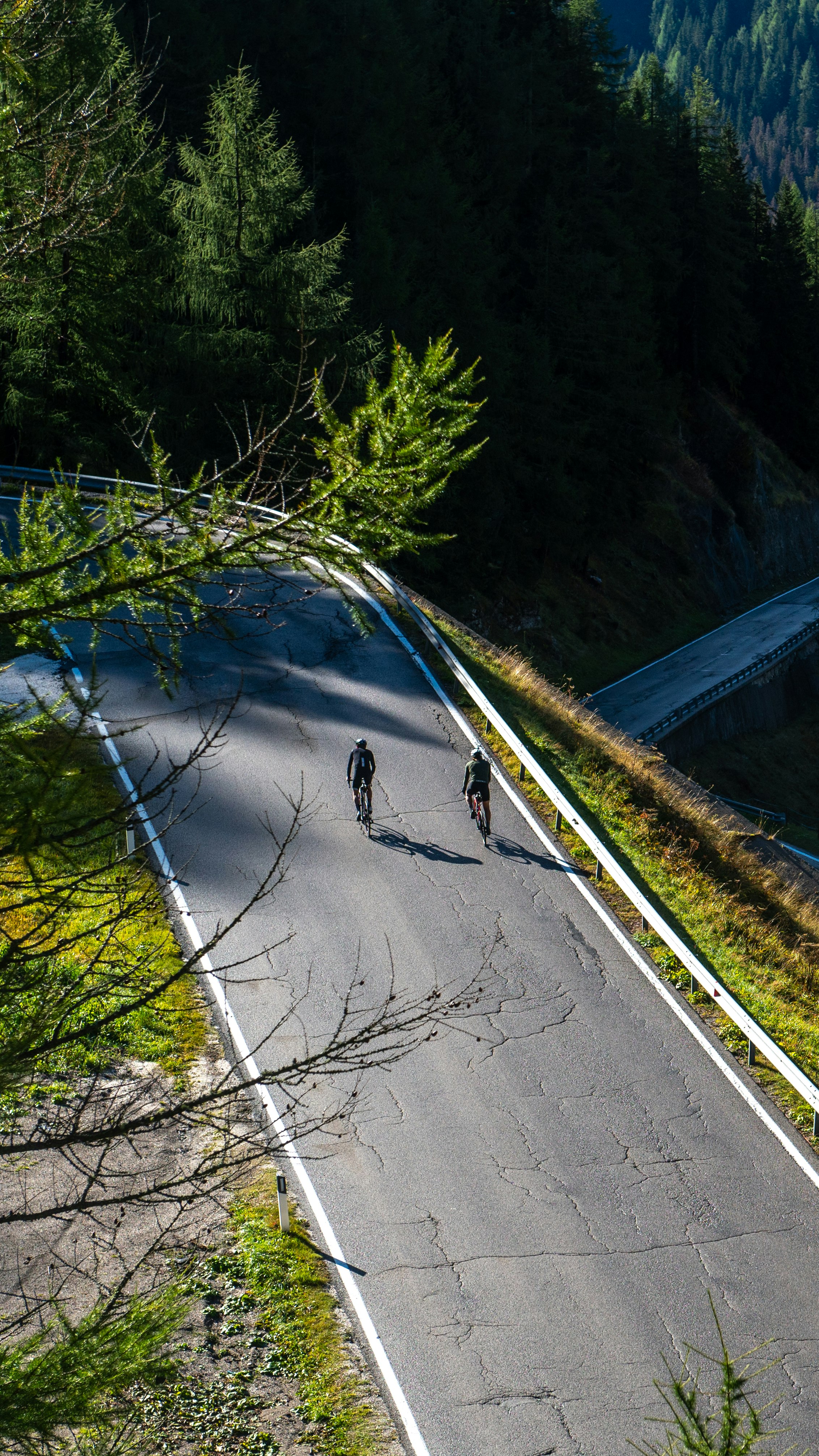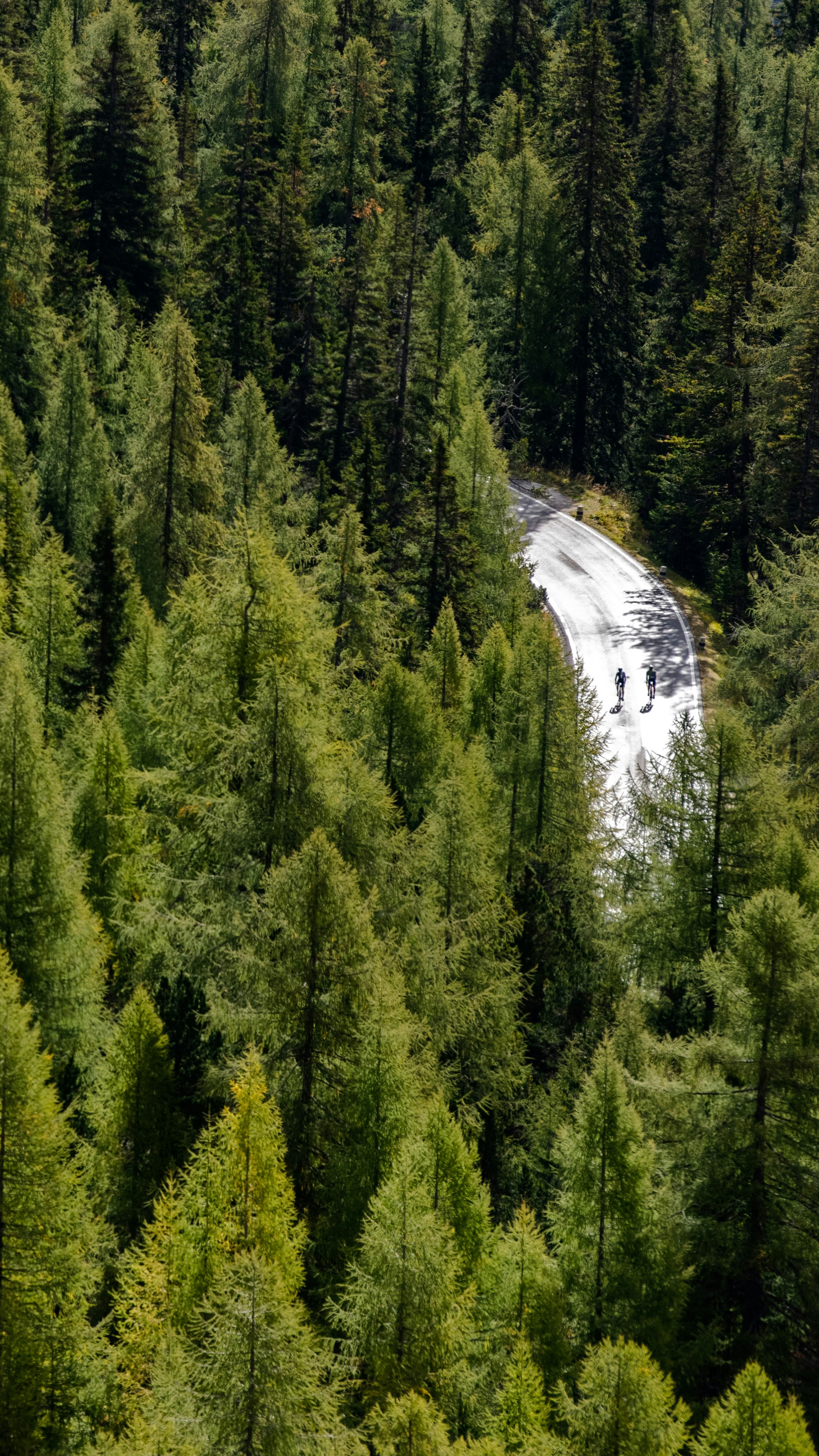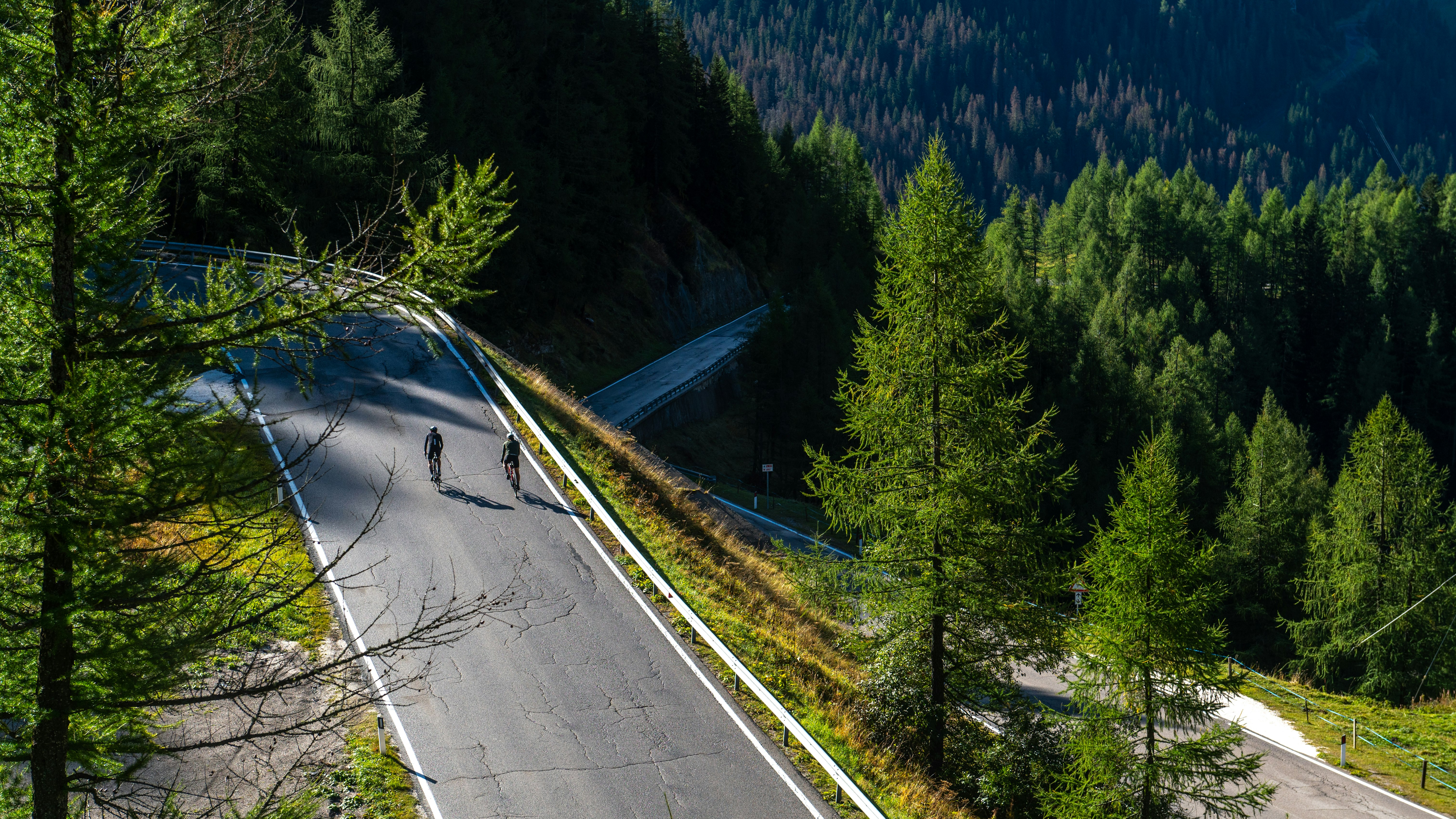 From here, the road descends for a couple of kilometres before pitching towards the sky yet again; with consistent gradients between 9 and 10% and peaks of up to 16% all the way to the summit at 1,991 metres. Here, Putia’s majesty is even clearer. Caution is advised for the descent, as you need to ride carefully along the narrowing road. Take one last glance at the mountains that stretch to infinity before the handlebars are thrown into the larch and pine forests below.