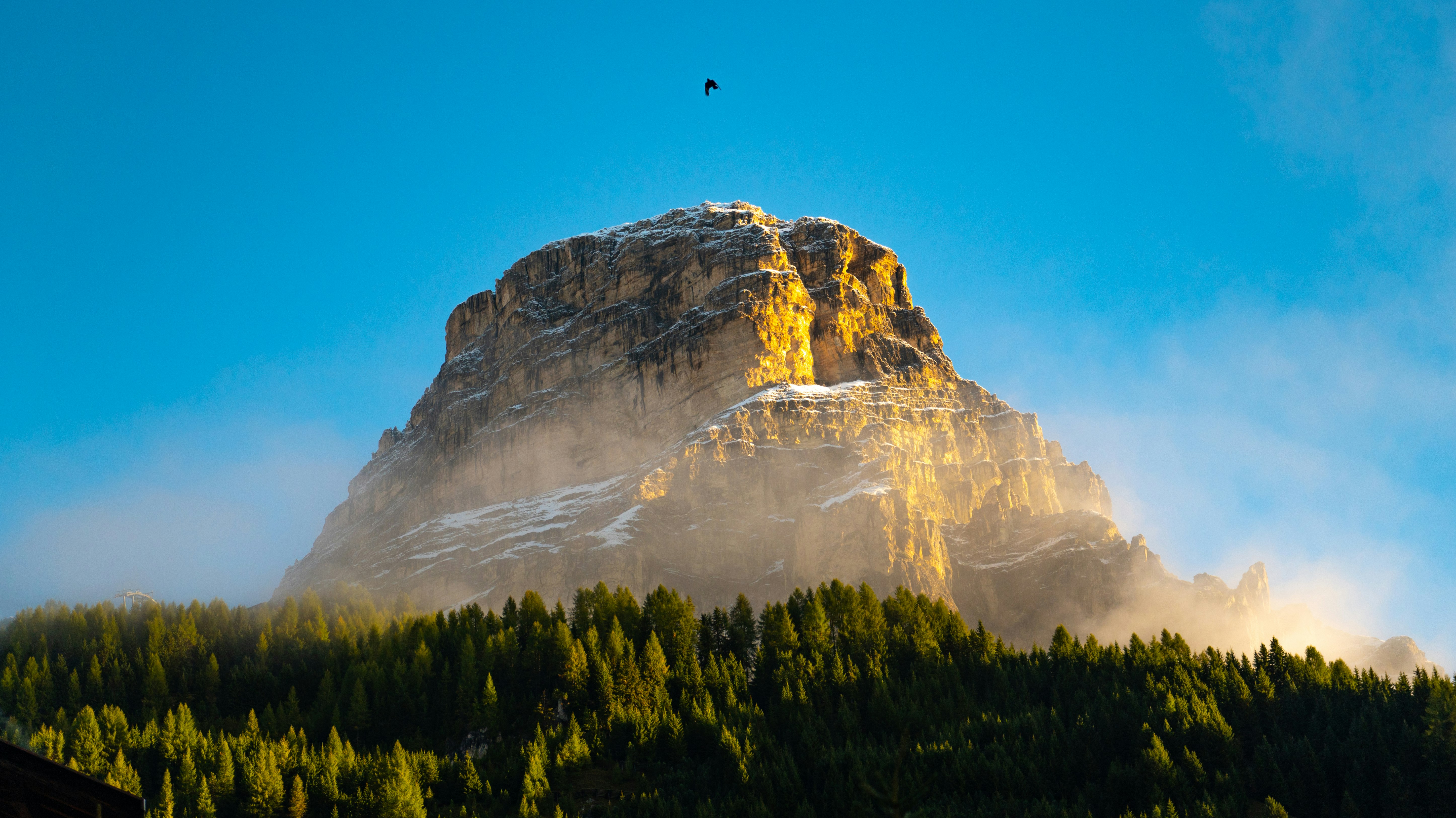 The Campolongo pass is considered the little brother of this family, but the switchbacks that twist and turn above Corvara are of rare elegance. The Sassongher rises majestically from behind to remind us that beauty is a precious gift — one to contemplate and to protect. This is where the iconic photos of the Maratona dles Dolomites have been taken for more than 30 years, with the unmistakable multicoloured peloton of cyclists riding together. The descent towards Arabba is a hymn to the forests, which the Vaia storm of a few years ago seriously threatened. We will always remember how locals worked industriously alongside each other after the carnage, yet we need to be aware that we owe Mother Nature more. Much more.