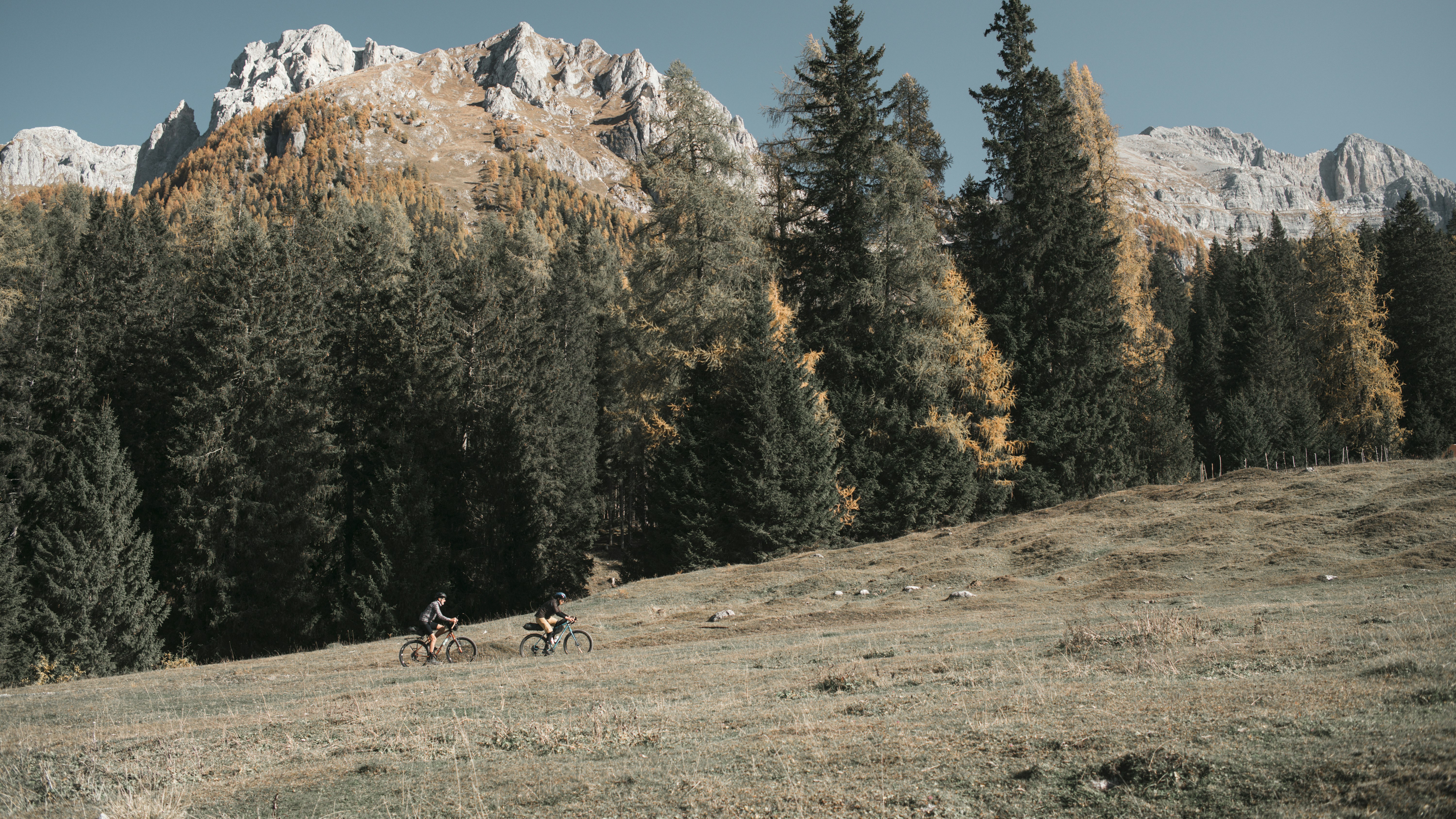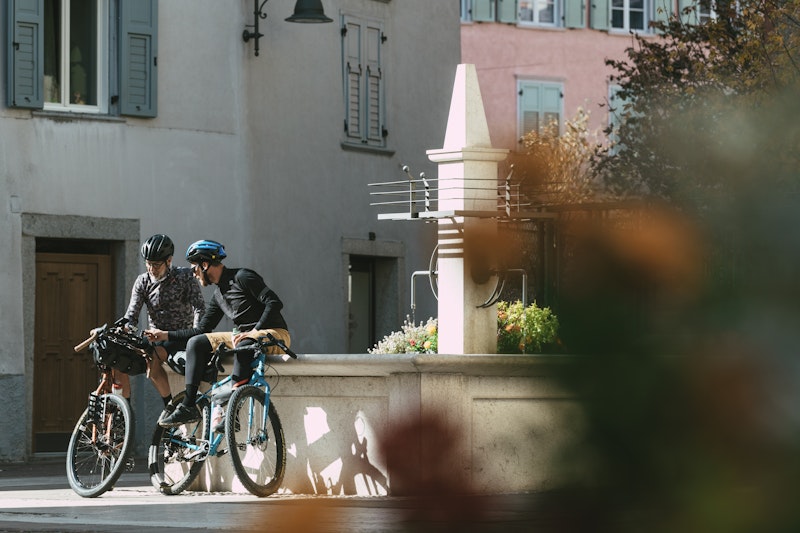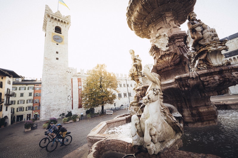 As usual Paolo is the first to arrive, and I find him by the fountain tinkering with his new set of Brooks bags. We have packed the bare minimum because this time we will not pitch any tents, we will not hunt any wild animals to feed ourselves, but we will be pampered by the excellent hospitality and cuisine of Trentino. The feeling of being unloaded and light motivates us a lot, but we know perfectly well that small feats await us.