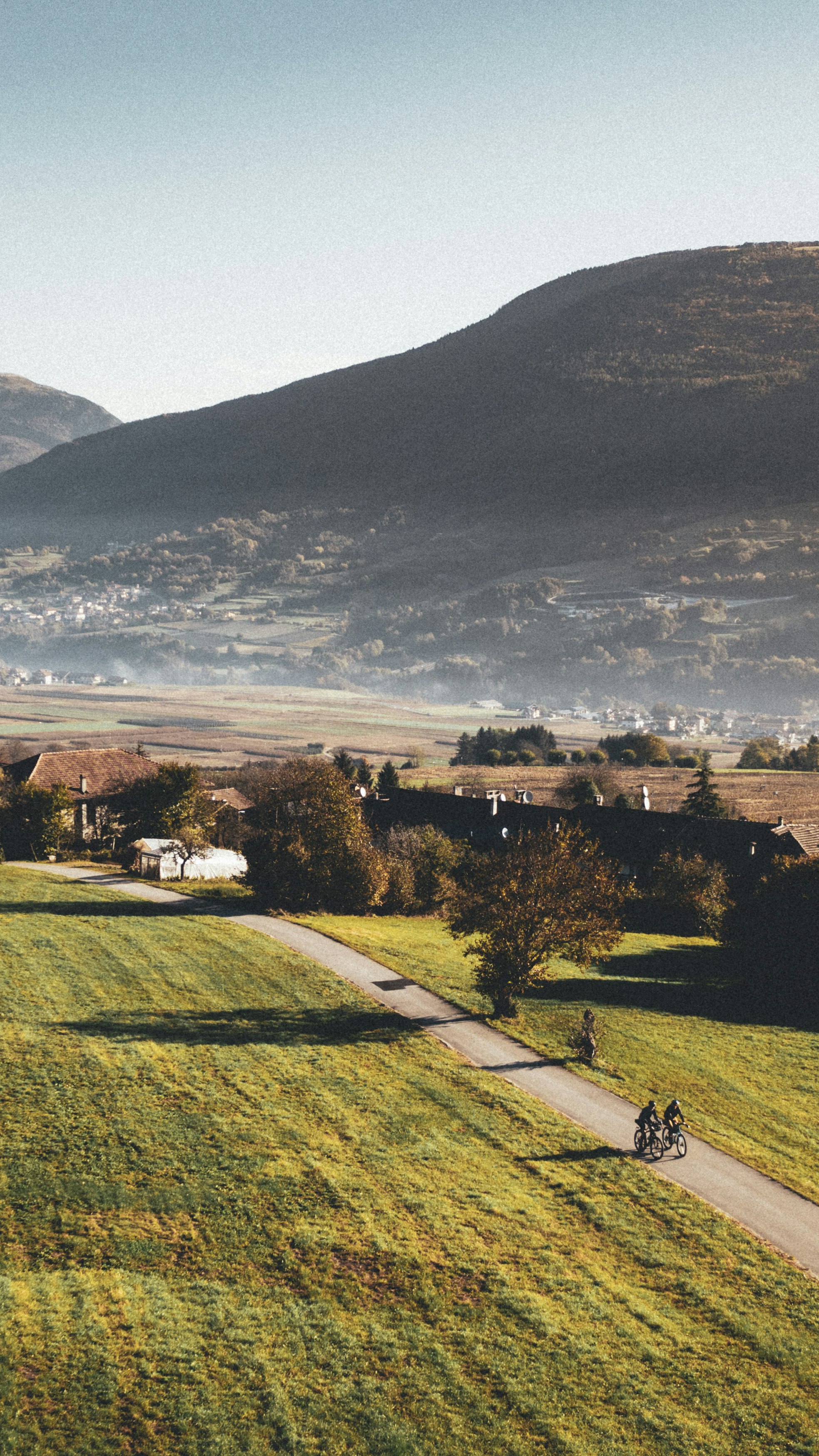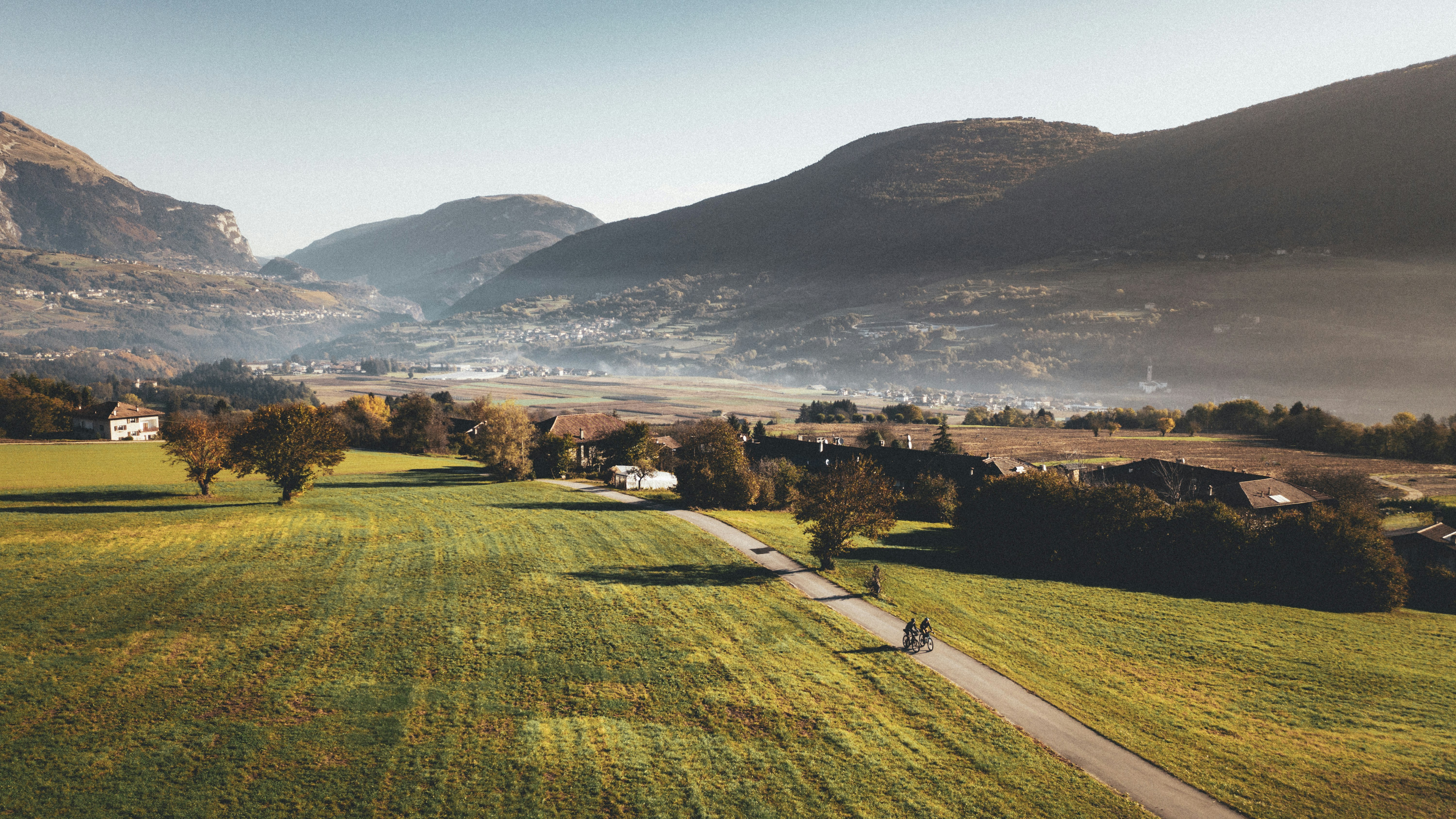 We leave the fertile Val di Gresta behind us, enjoy the view of Lake Cei and finally take the state road towards Aldeno. The Adige Valley welcomes us back with the usual routine that we had put on hold three days ago. We return towards Trento on little-used stretches of road between vineyards and orchards, pedalling side by side. Our long shadows anticipate us on the road.