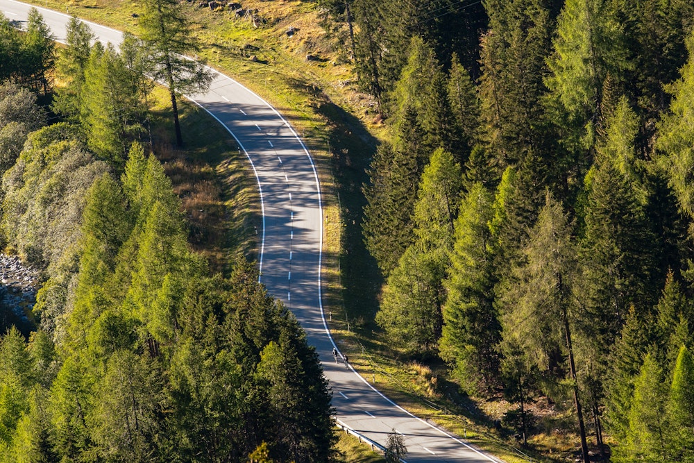 Leaving the pass, we indulge in a diversion on a gravel road. It is steep, and leads up to the Lägh da Cavloc, a natural paradise embraced by forest at 1,900 metres above sea level. There is a small hut with a terrace overlooking the emerald-green water. Close by there’s a shop selling delicious cheese and other local produce. If you want - and if you have space - by all means try it.