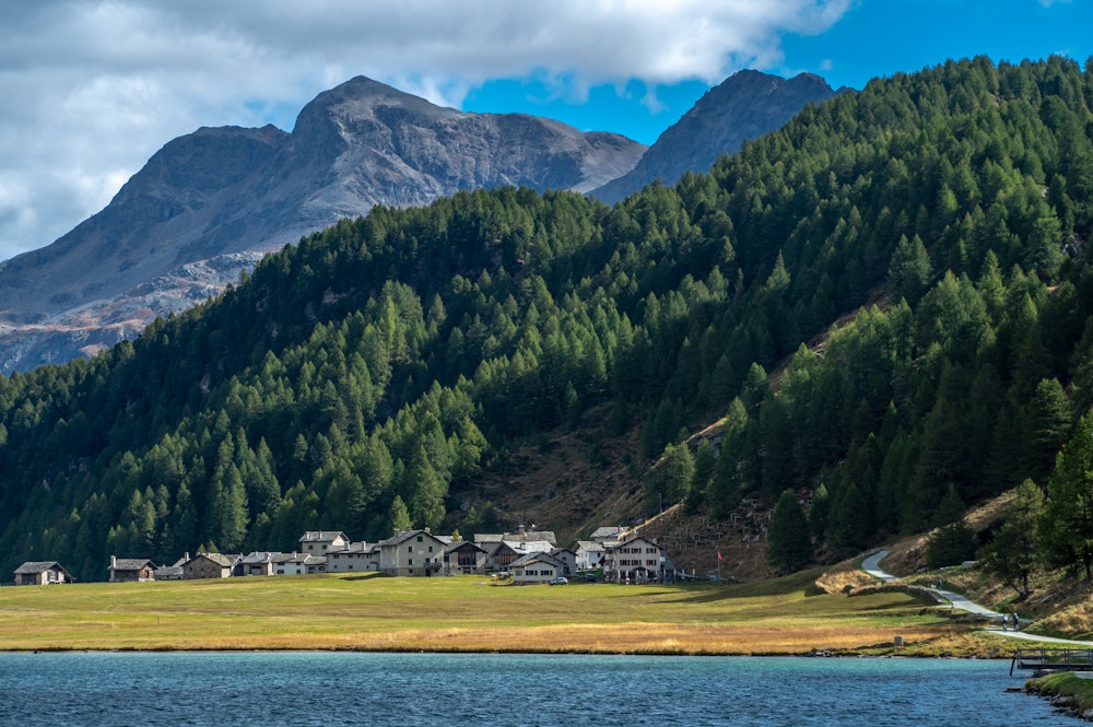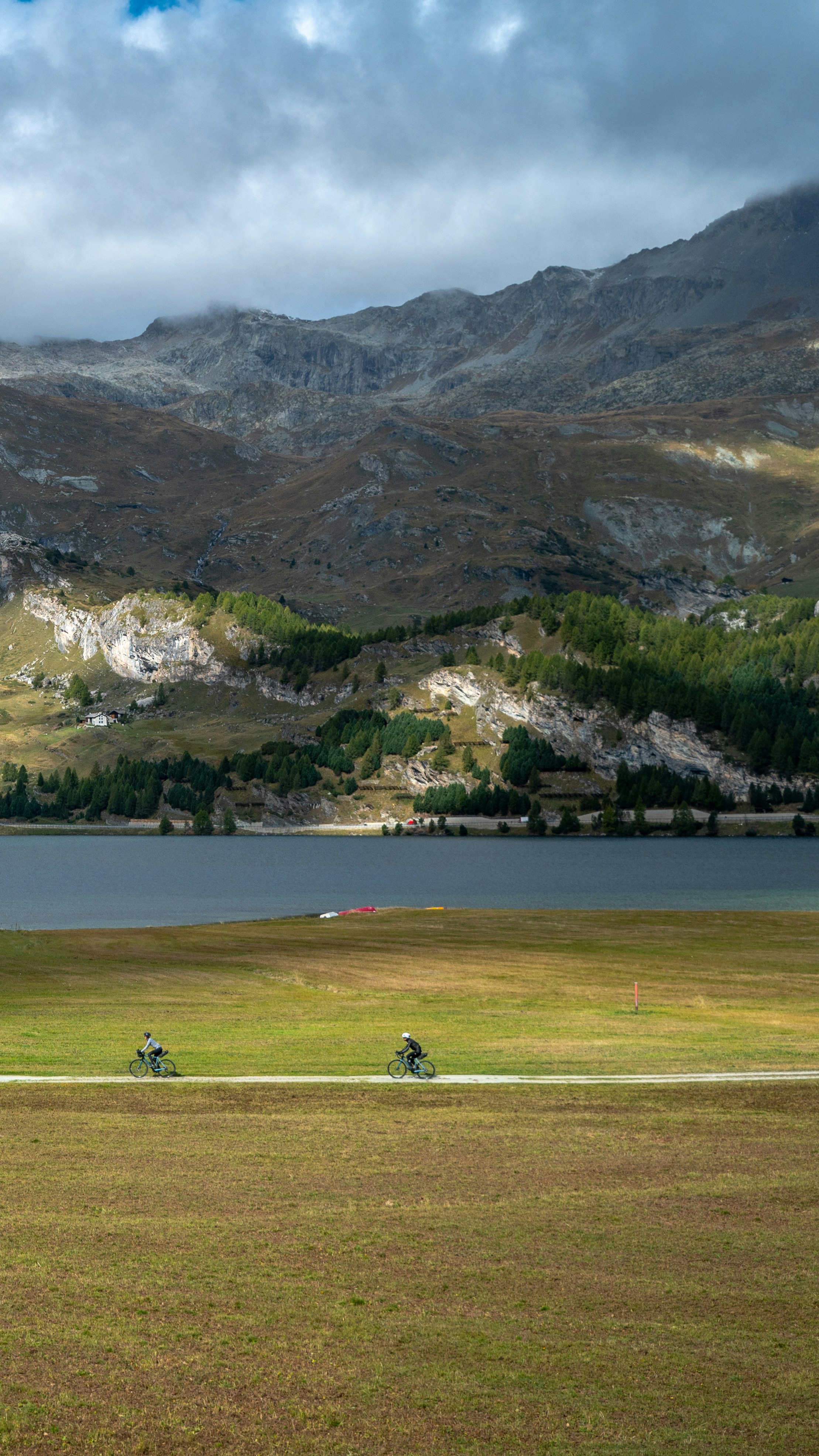 Along the same route, we return to the village of Maloja and then along a forest road to Isola, the last hamlet in the municipality of Bregaglia. From here we take a challenging section of single track that runs along the lake of Sils on its right bank. Some care must be taken: this is a real trail, marked with signs, and there are numerous hikers en route.