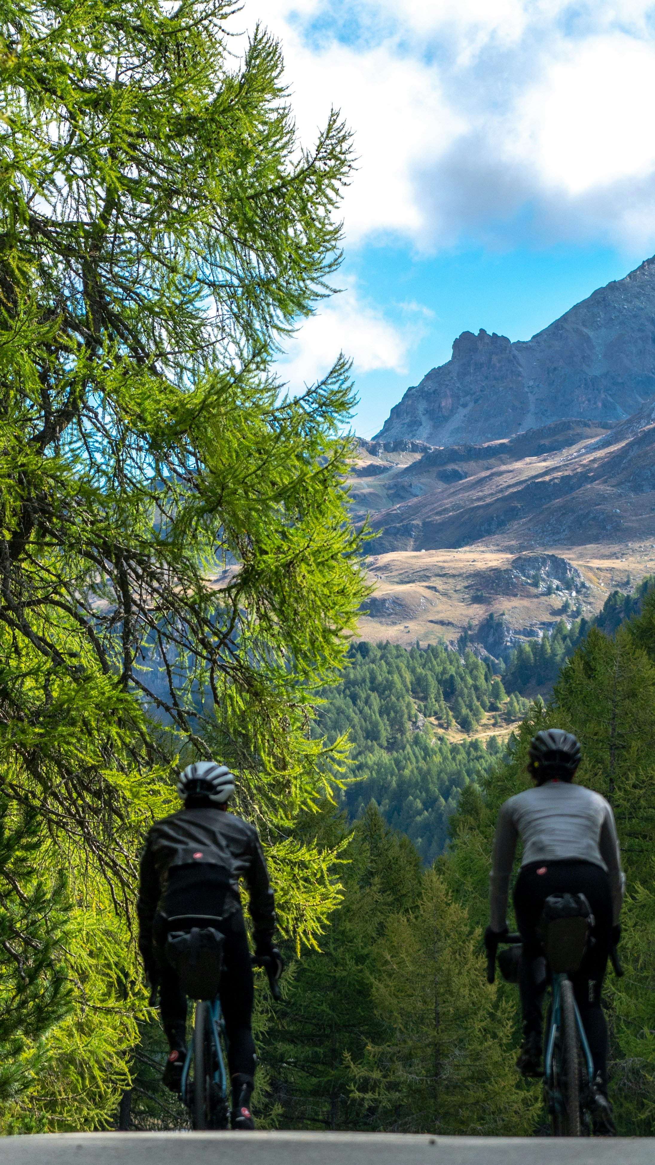 We all know it — cycling often leads to having one’s head in the clouds. And for these two days, we will almost literally have our heads in the heavens. They will be two demanding, beautiful and emotionally charged days. The first stage takes us from Chiavenna to Sils Maria, in Swiss territory: 100 kilometres with about 2,000 metres of altitude gain. The second, tougher and with more elevation, will take us to Alpe Motta — a stage finish of the 2021 Giro — and the village of Montespluga with its famous dam: only 90 kilometres in total, but with about 3,000 metres of ascent. Bike: gravel. So as not to miss anything these places have to offer.