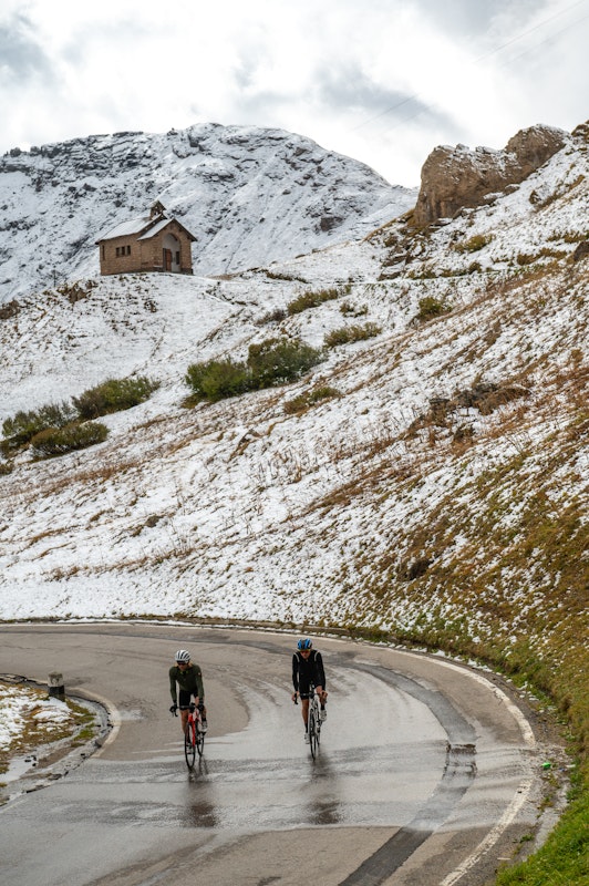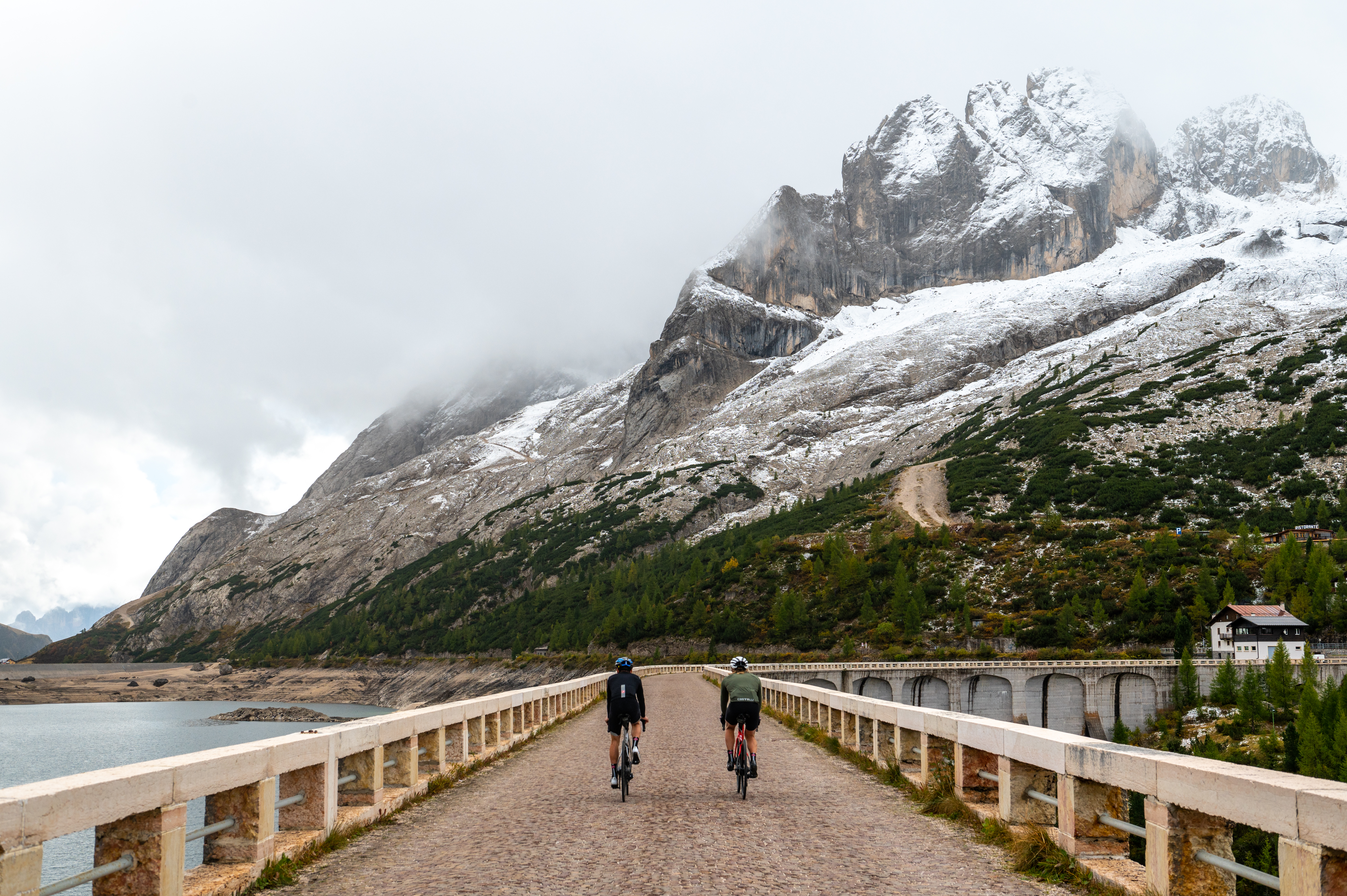 And it’s in Alta Badia where we spent two days on our bicycles — two loops, both 100 kilometres in length with over 3,000 metres of elevation gain. On the first day we rode around the Puez Odle nature park, before descending through the Funes valley to the Isarco river. Then we climbed along the Gardena valley towards Gardena Pass and descended again to Colfosco and Corvara. The second day, we tackled in sequence some of the most historic Dolomite passes; Campolongo, Pordoi, Fedaia, Falzarego and Valparola, all whilst drinking in the awe-inspiring views and sumptuous landscapes.