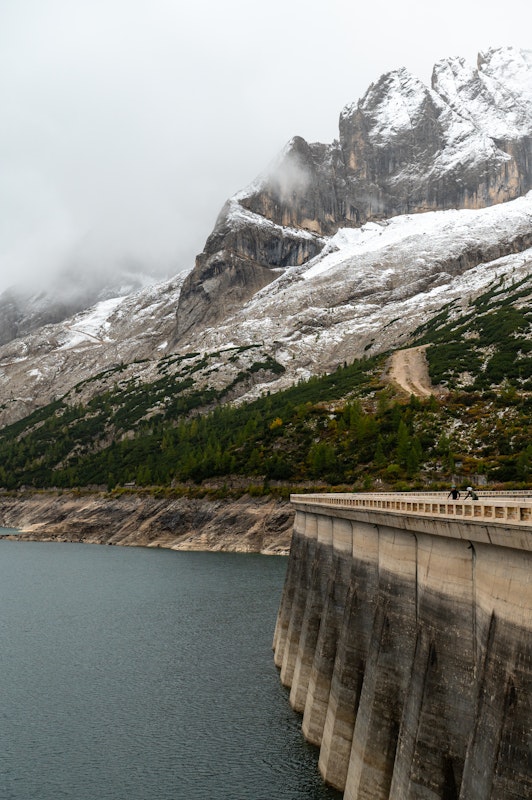 There is the lake, and there is the Marmolada. Silence all around. The title of a famous essay by Jonathan Franzen comes to mind: what if we stopped pretending? Yeah. The descent is long, and the fresh Dolomite air fills the lungs like a healing nectar. We pass by the Serrai di Sottoguda, almost restored after the damage of storm Vaia. The village of Caprile hosts a peaceful centre, which is worth a coffee stop — as well as a strudel or tart.