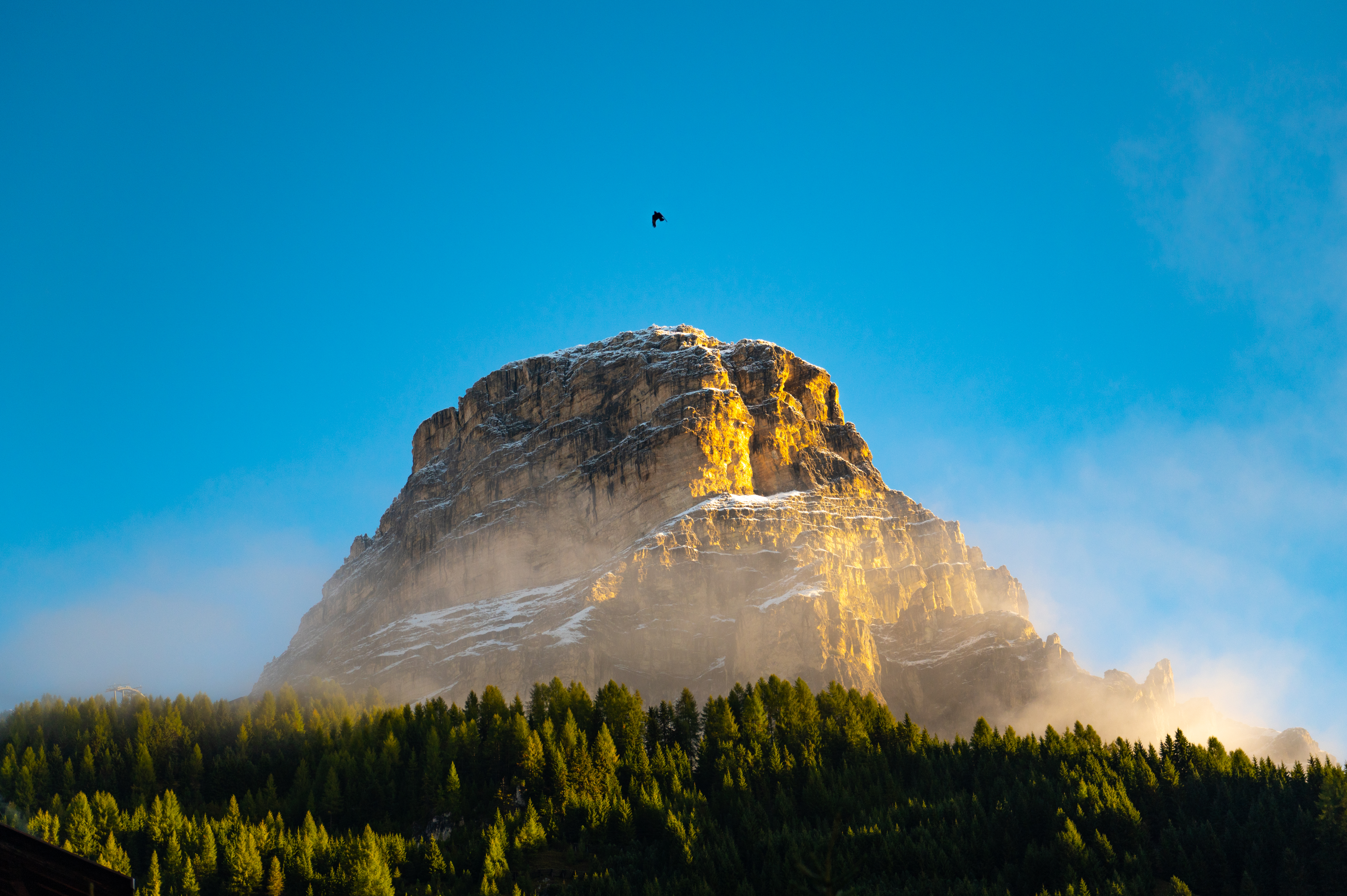 The Campolongo pass is considered the little brother of this family, but the switchbacks that twist and turn above Corvara are of rare elegance. The Sassongher rises majestically from behind to remind us that beauty is a precious gift — one to contemplate and to protect. This is where the iconic photos of the Maratona dles Dolomites have been taken for more than 30 years, with the unmistakable multicoloured peloton of cyclists riding together. The descent towards Arabba is a hymn to the forests, which the Vaia storm of a few years ago seriously threatened. We will always remember how locals worked industriously alongside each other after the carnage, yet we need to be aware that we owe Mother Nature more. Much more.