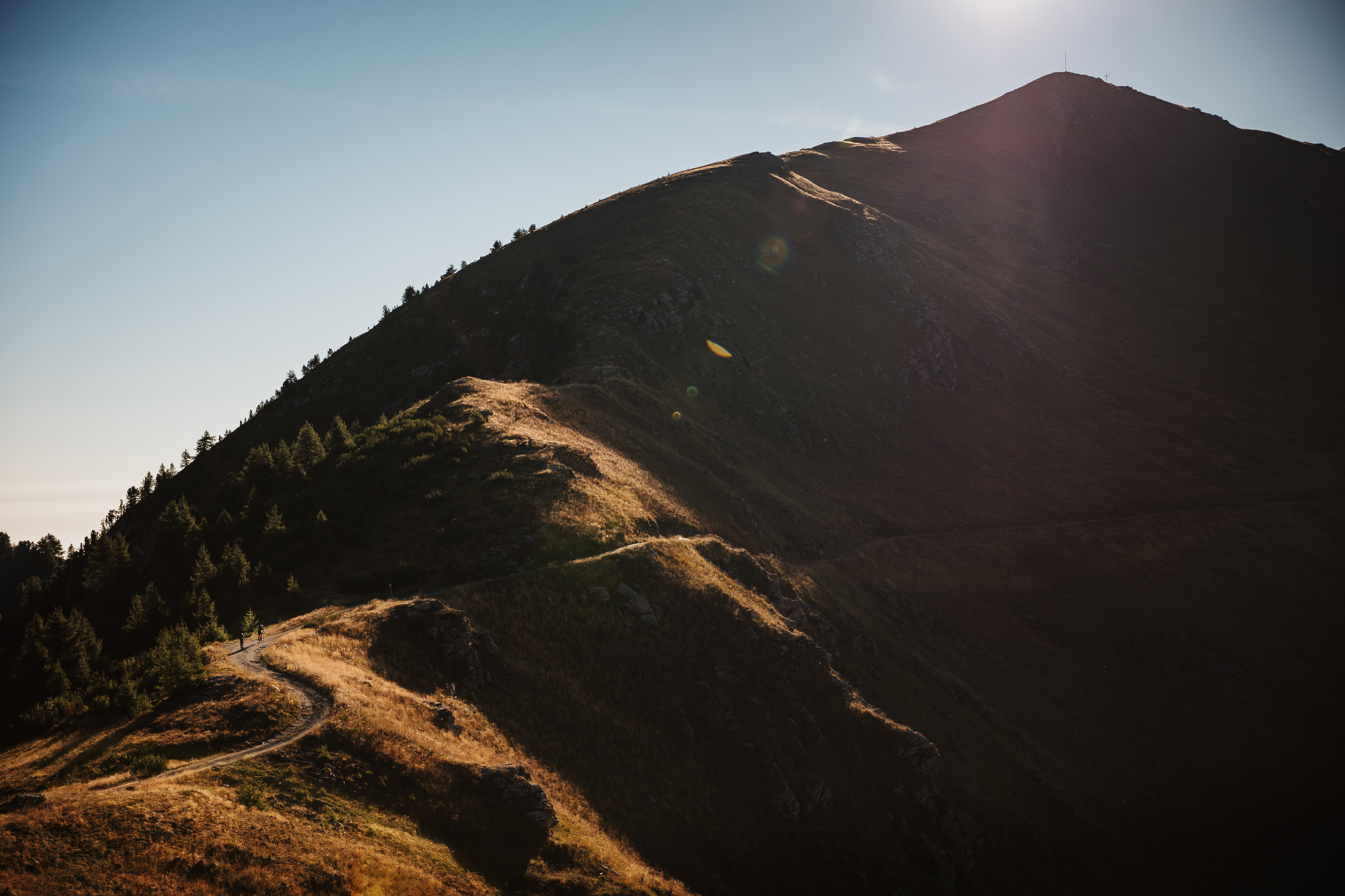 A little bit of stretching before we tackle the Cima Ventosa, just below the monte Saccarello and Tanarello that seem to be placed there for protection. Lunchtime approaches and we keep our concentration high because the descent to Monesi is on a dirt road and proper manoeuvring is crucial. From here, the ascent into the Bosco delle Navette begins: we need to have lunch first, but a just a light one, lest we are put off the cyclin. Around us a thousand hectares of larch trees, interspersed with beech and silver fir, with the sun’s rays filtering through the trees, creating games of light. This is the southernmost larch forest in the Alps. For centuries, timber was obtained from these forests to build the ships of the Repubblica di Genova, hence the origin of the name. The descent to the Rifugio Don Barbera is a series of diagonals that continuously open up new sceneries: the Rifugio can also be a perfect place to stop and break the journey, if tired or caught in bad weather. But today the sun is still high above us and the white tracks of the Alta Via del Sale are so glaring that we are almost dazzled by them.