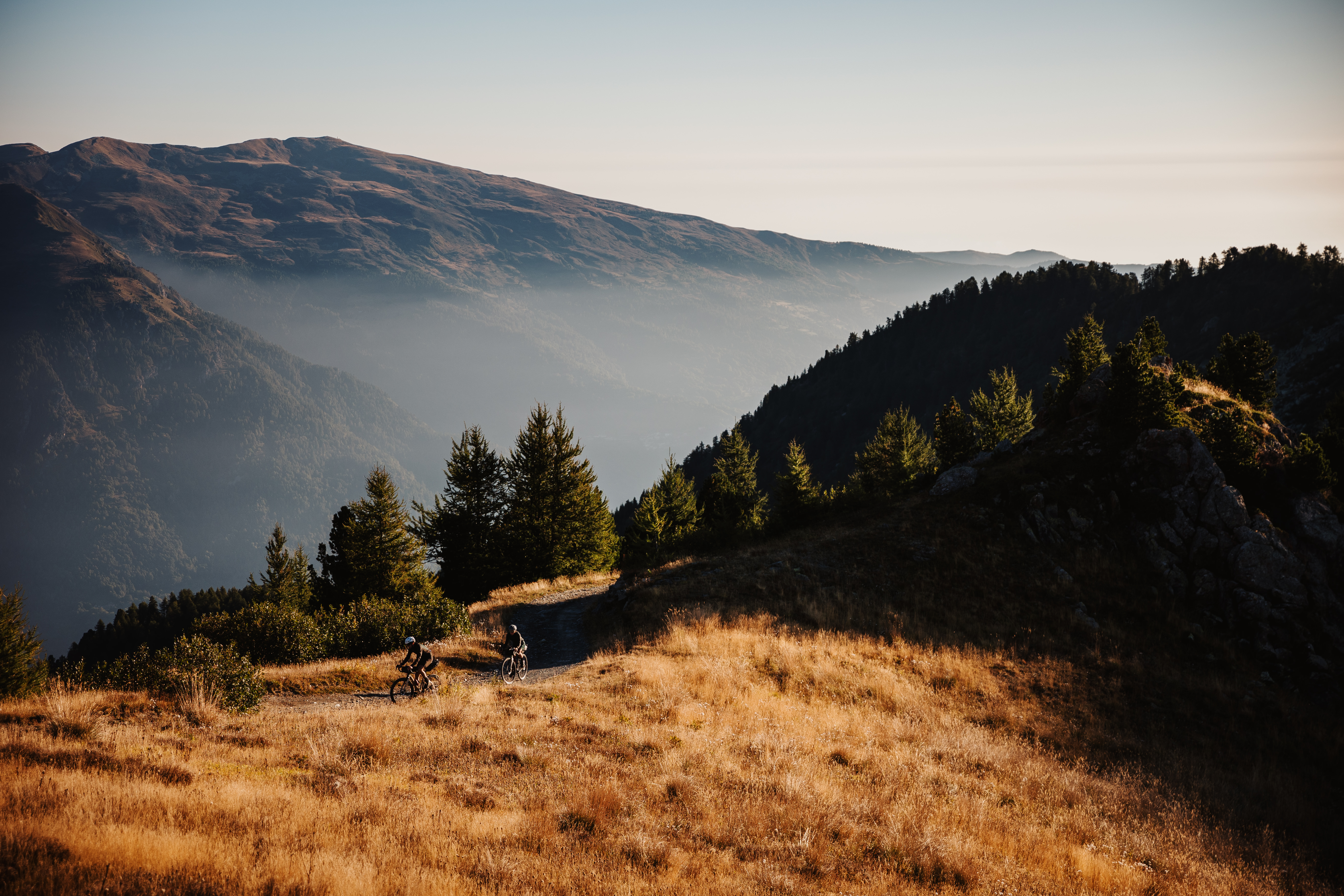 In between the plants, the view is over the Valle Varaita: the landscape is almost immaculate, man has left no trace here. The strain begins and our breathing plays its laboured symphony, but this is just the beginning and after the Valmala crossroads things get tougher: the dirt road... At first it is only a cause for happiness: we play with trajectories, lift dust with the bike wheels. At the summit of the Colle della Ciabra, someone tells us about Monte Roccerè and its rock engravings dating back to the Bronze Age. Who knows, maybe one day we’ll return and have a proper look.