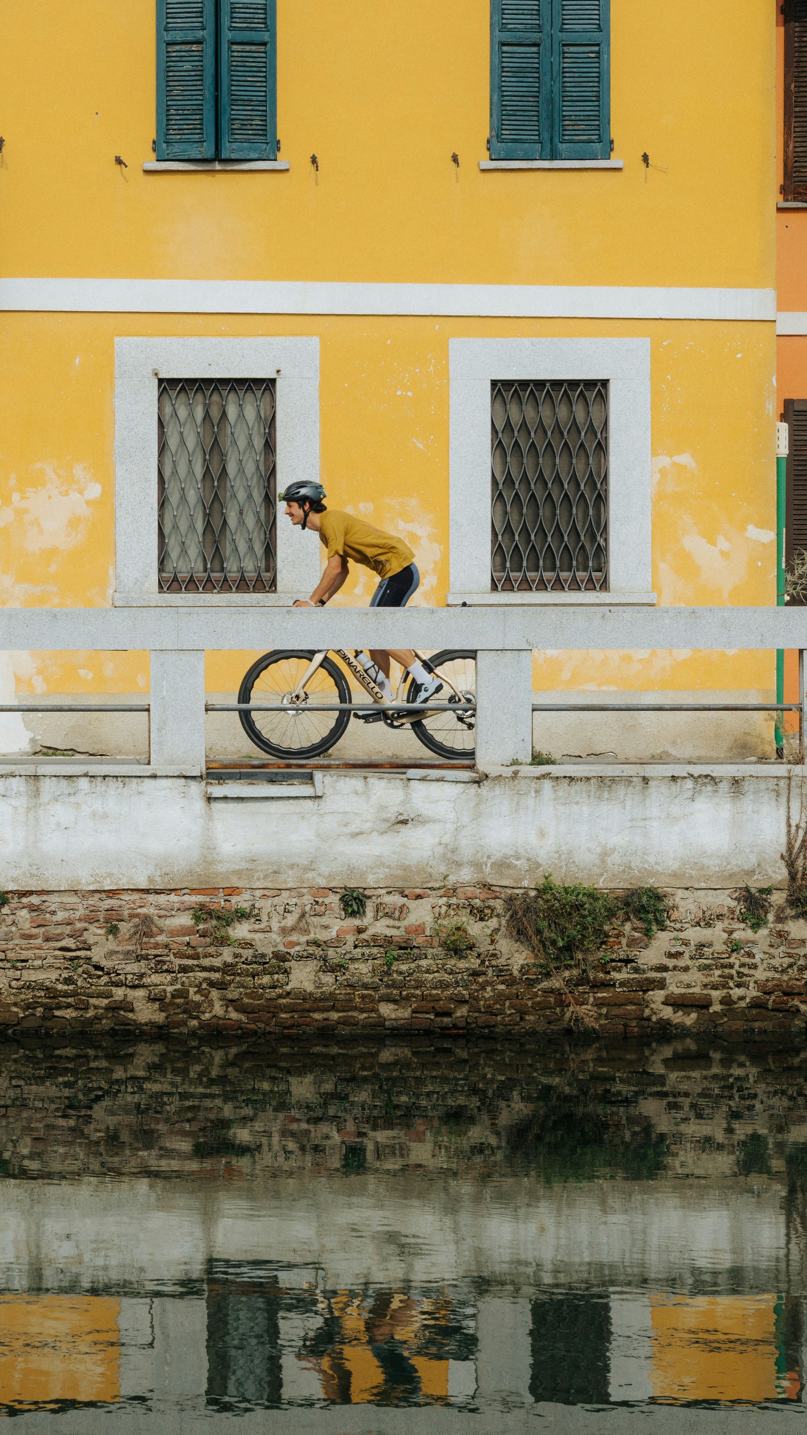 The way back into Milan, through the small town of Vaiano Valle, is gentle and far away from the traffic. I pass the Corvetto and Calvairate districts using fast roads; I realise that, even if I’ll have to cross the entire centre of Milan again, it would make sense to end the adventure at Rossignoli’s, a historic bicycle shop. Many have told me about it, but I’ve never been there before. Arriving in Corso Garibaldi, it’s impossible not to notice the red lettering on a white background and the yellow-lit shop windows, there’s Piero della Francesca and Raffaello in the nearby art gallery Pinacoteca Brera, but I decide to put them on my to-do list for the next time I’m here. Inside, I meet Giovanna, who runs the shop with her brothers. Her smile is contagious, and the two words with which she bids me farewell I think are the best wish that can be made to those who move around by bike, in Milan or elsewhere, for who’s about to finish their journey on their way to the station to catch a train, or for those who are about to start a long bikepacking trip: ‘Happy cycling’ she says.