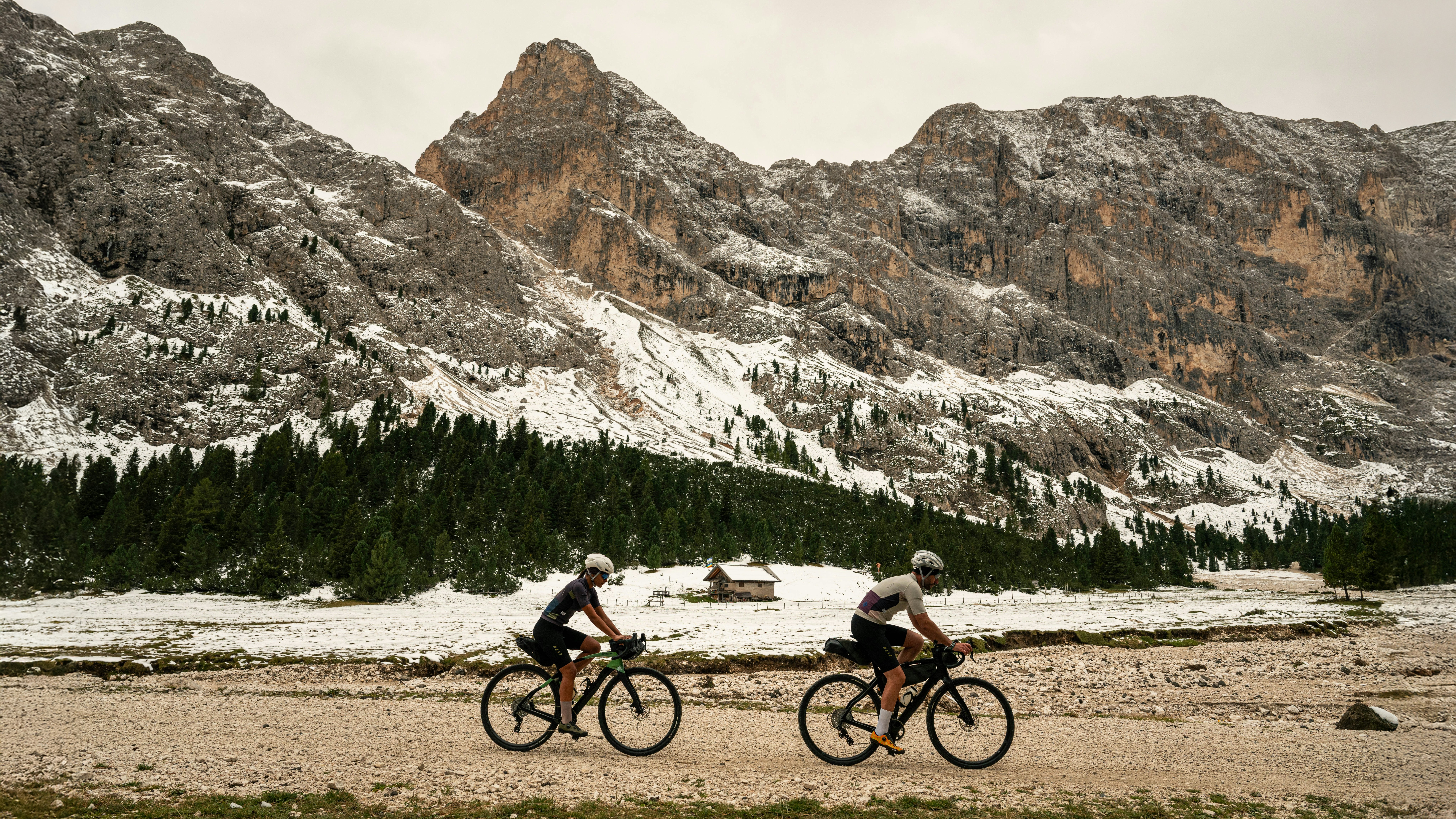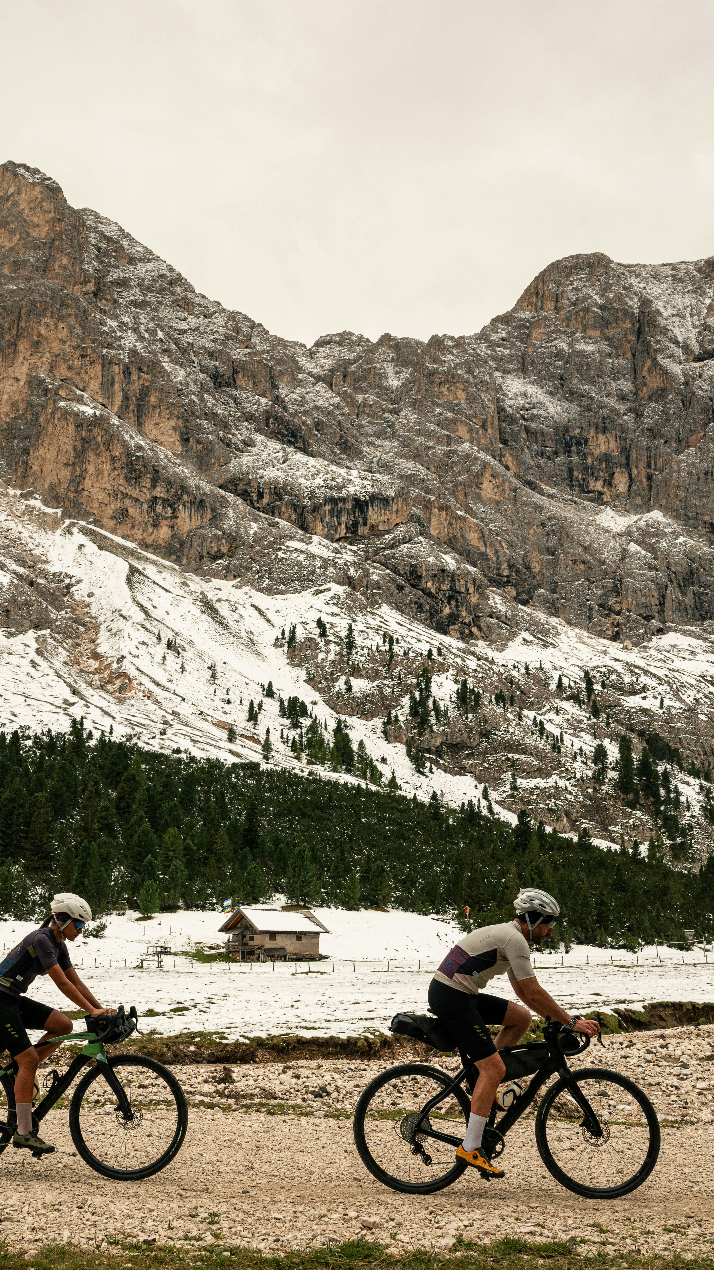 So here we are. The summer ride and the sunny postcard of the Dolomites we had imprinted in our brains were long gone. Welcome to three days of high mountain gravel with a sprinkle of snow.