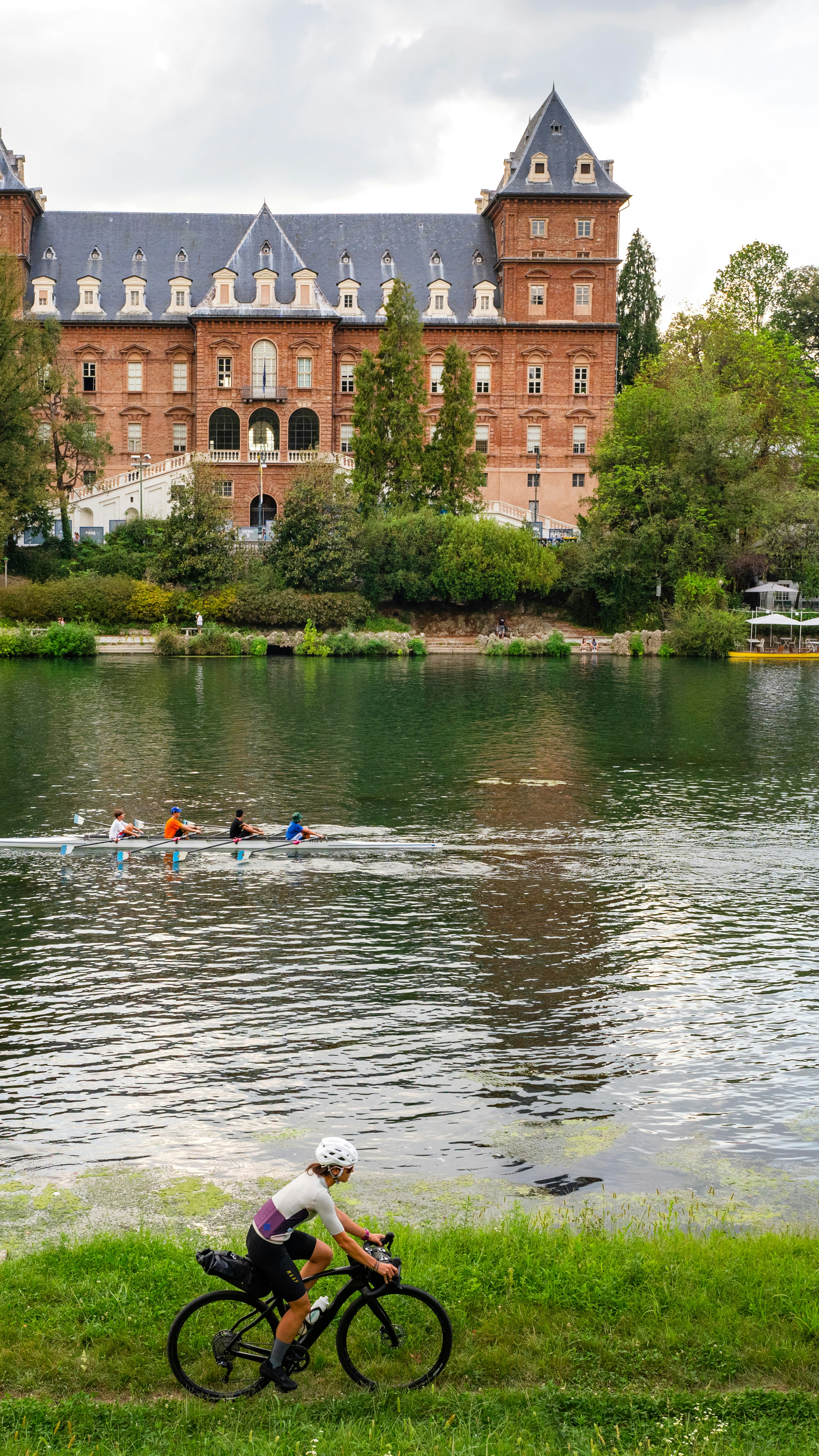 Finally on our bikes, we literally passed through the Roman Palatine gates, to follow the Dora Riparia and then the Stura river to Venaria. The natural habitat of the rivers, the history of industry, the glimpses of the Pié Monte mountains: the DNA of the region is almost all here, within just a few kilometres. What better anticipation of the many places that we will find along the 650 kilometres that we will travel?