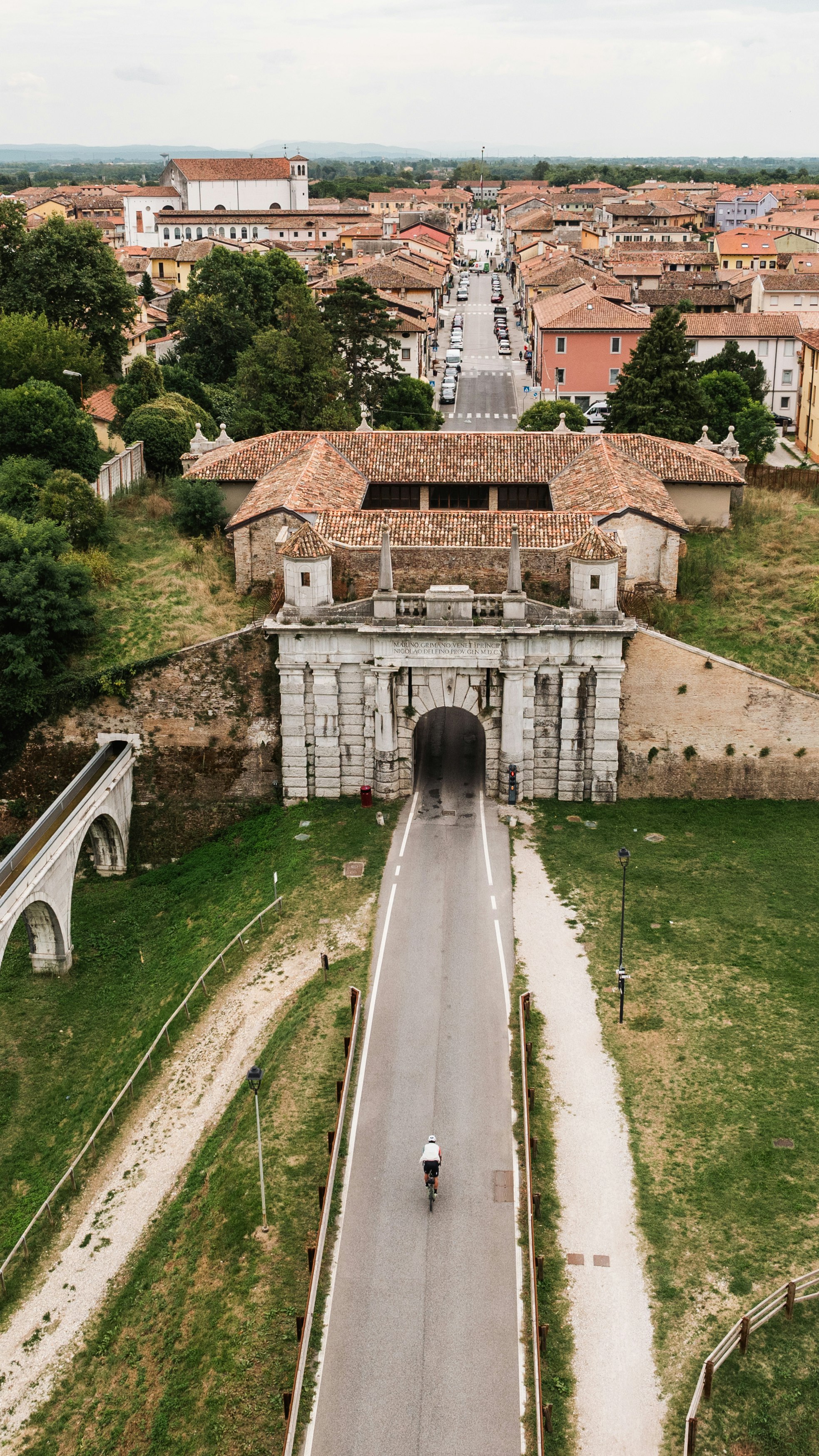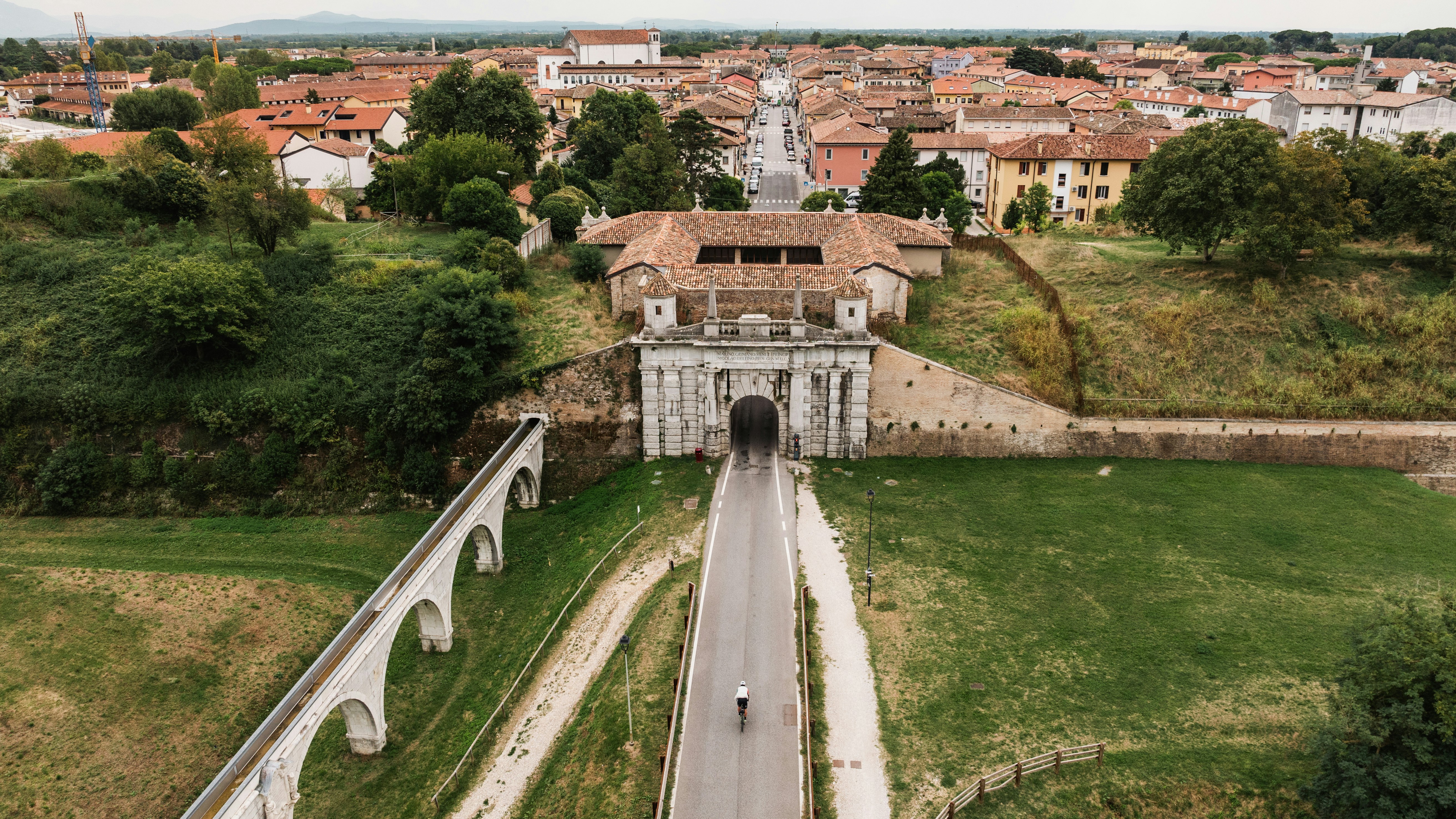 Then more dirt tracks through corn and soybean fields, riverbanks and the nine-pointed star of Palmanova, a Venetian architectural wonder.