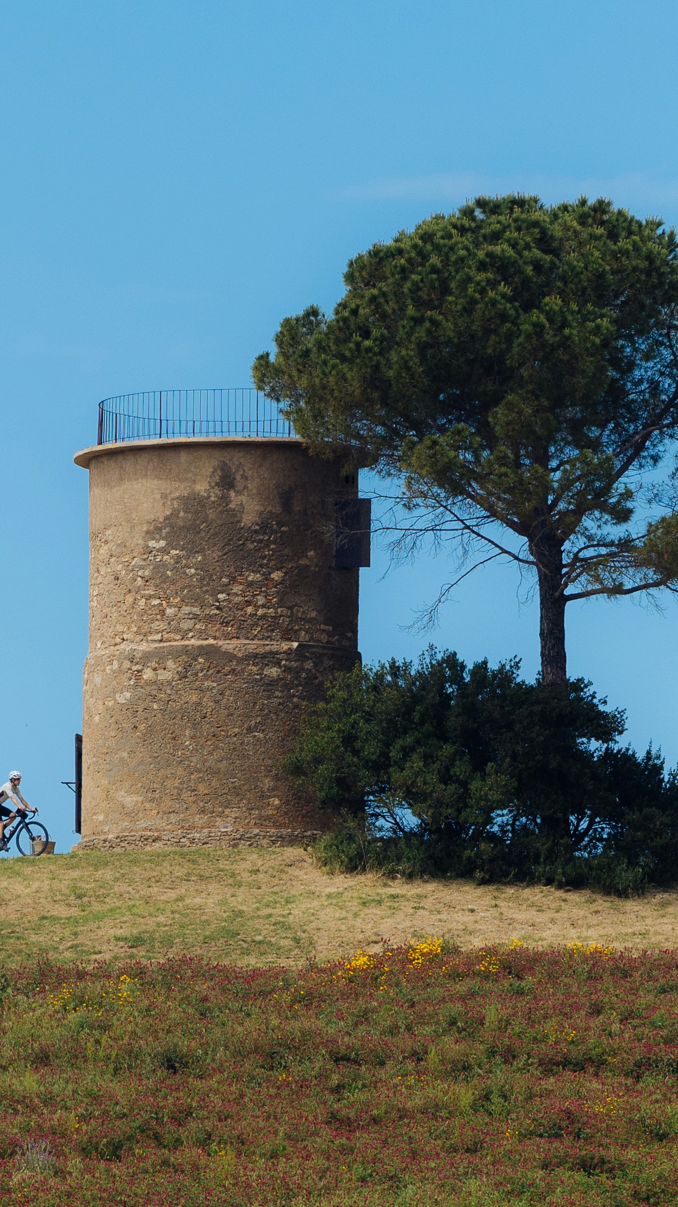 As far as the eye can see, on the slopes around where we cycle, white geysers punctuate the green woods. The areas around Pomarance are used for geothermal energy. From time to time, we have to wade through the botri, rainwater run-off channels that suddenly appear in the countryside and woods. Then Chiara or Frank point to somewhere downhill and say: ‘Here is the mill!’, meaning a windmill located on the top of a hillock and which has become one of the symbols of Bibbona. Actually, I think they mean: ‘Here's home!’.