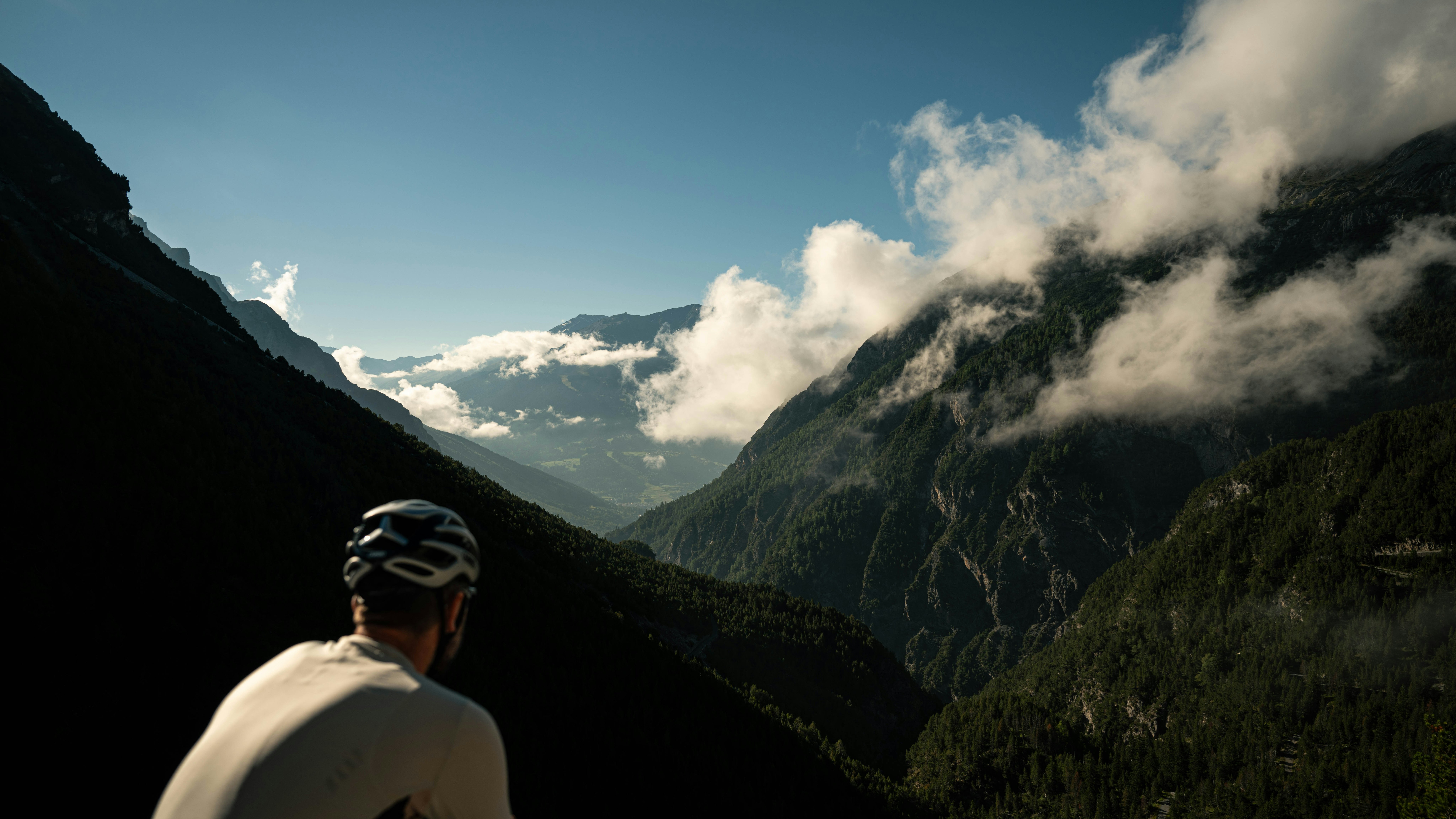 We find ourselves in Santa Maria, which gives us a good taste of life in Switzerland: peaceful, colourful and quiet. It’s time to go back to Bormio before it gets dark. As we go down from the Umbrail Pass, we can’t stop thinking about how beautiful this part of the road is. The Braulio valley sinks in between two rock faces, with the road on our left. We stop to have a look at this masterpiece. It represents the essence of the Stelvio road, a crazy line someone drew on a map, two hundred years ago, and decided to build it. It’s also the most enjoyable downhill portion of the ride: fast and never-ending.