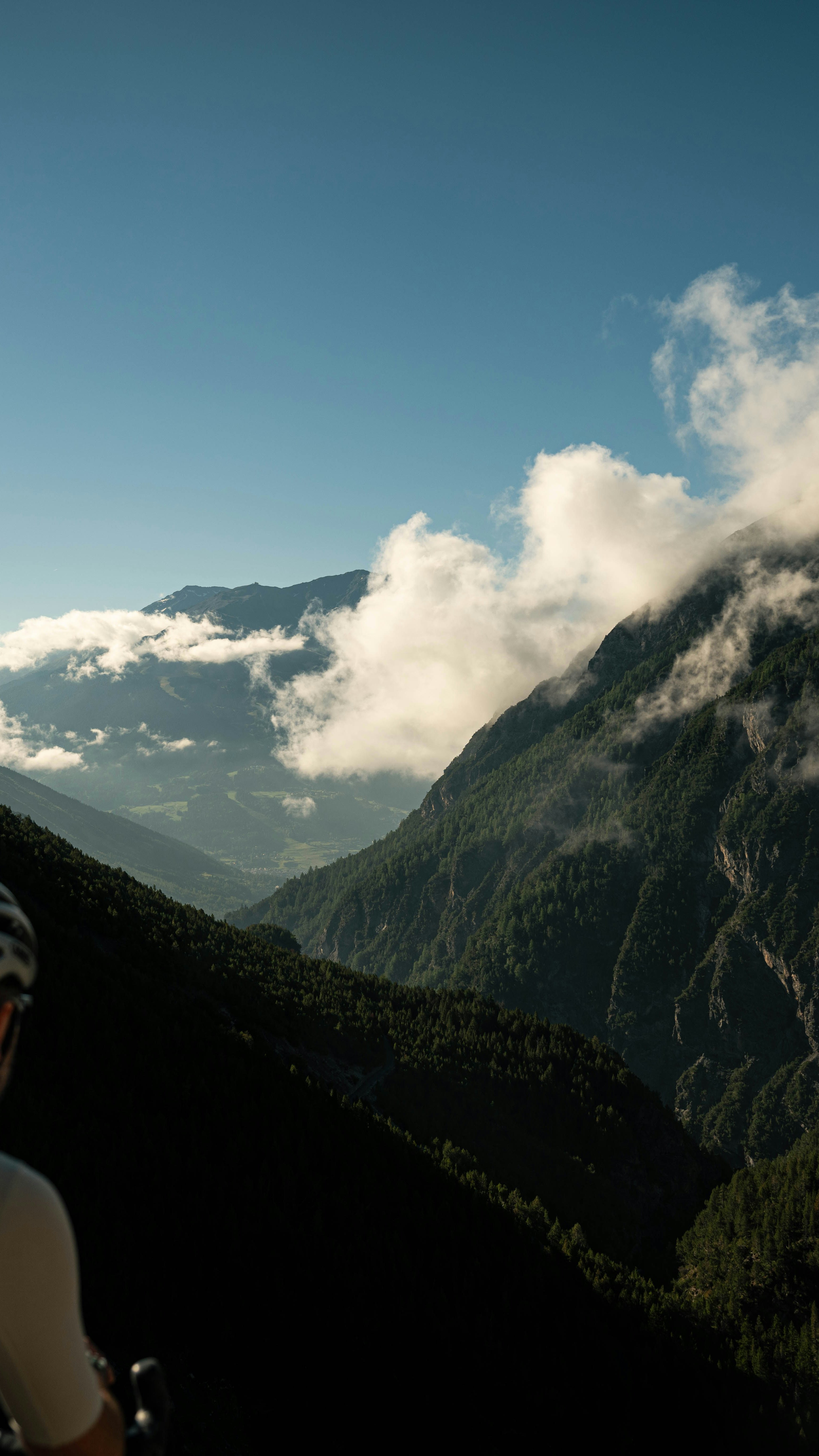 We meet up early in the morning with Daniele, alias Stelvioman, at the Funivia Hotel. He’s the Stelvio expert, both on road and on gravel. Just after the Bagni Vecchi, we get off the main road, take a left turn, and start climbing towards Forcola Valley. As soon as we get out of the woods, we are welcomed by a stunning view of the Bormio ski resort that goes up to 3000m. We keep on ascending with a stunning view of the surrounding peaks of Solena and Sumbraida. The unlikely encounter with a shepherd on an old motorbike reminds us that people still work in these mountains.