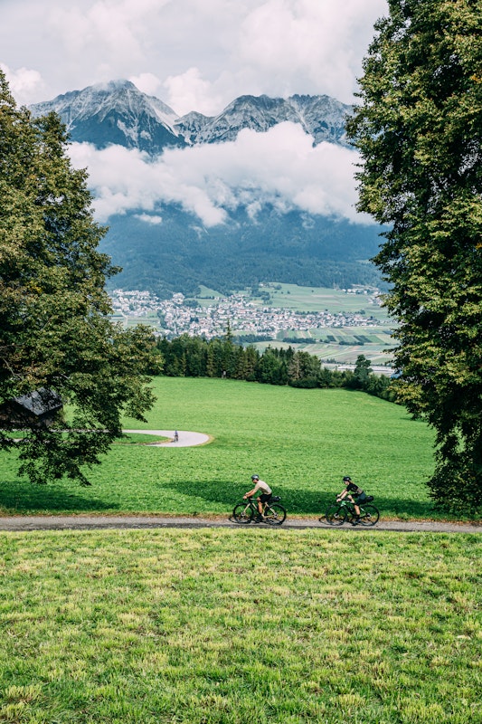 The ride goes on pleasantly and we reach Wattens. We pass an enormous building: it’s the headquarters of Swarovski. To be honest, we had no plan of stopping. The idea was to go straight ahead: the day is still long and the metres of altitude difference will be many. But the cycle path turns left and suddenly we are faced with an enormous ‘vegetation’ sculpture: it’s André Heller’s crystal-eyed giant and the gateway to Swarovski Crystal World. Wow, let’s call for a change of plan. We explore further, even if we have to park our bicycles outside. It’s an unbelievable place: we are amazed, wandering among installations by world famous artists, renowned architects and designers who’re having their own take on this world of crystals. After our walk through labyrinths, among sculptures and lights, we get back onto our saddles. It’s time to go a bit further and get closer to Innsbruck.