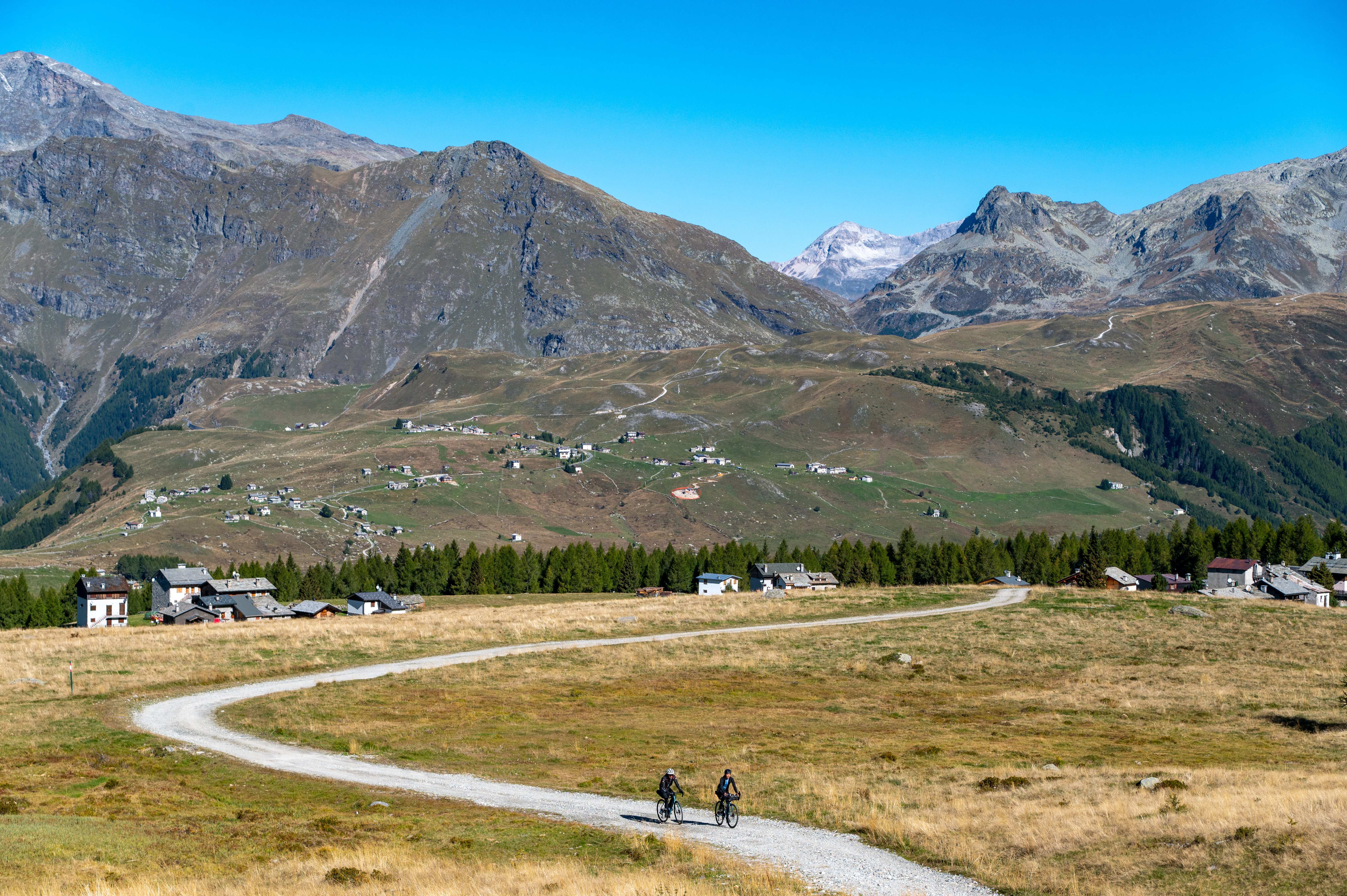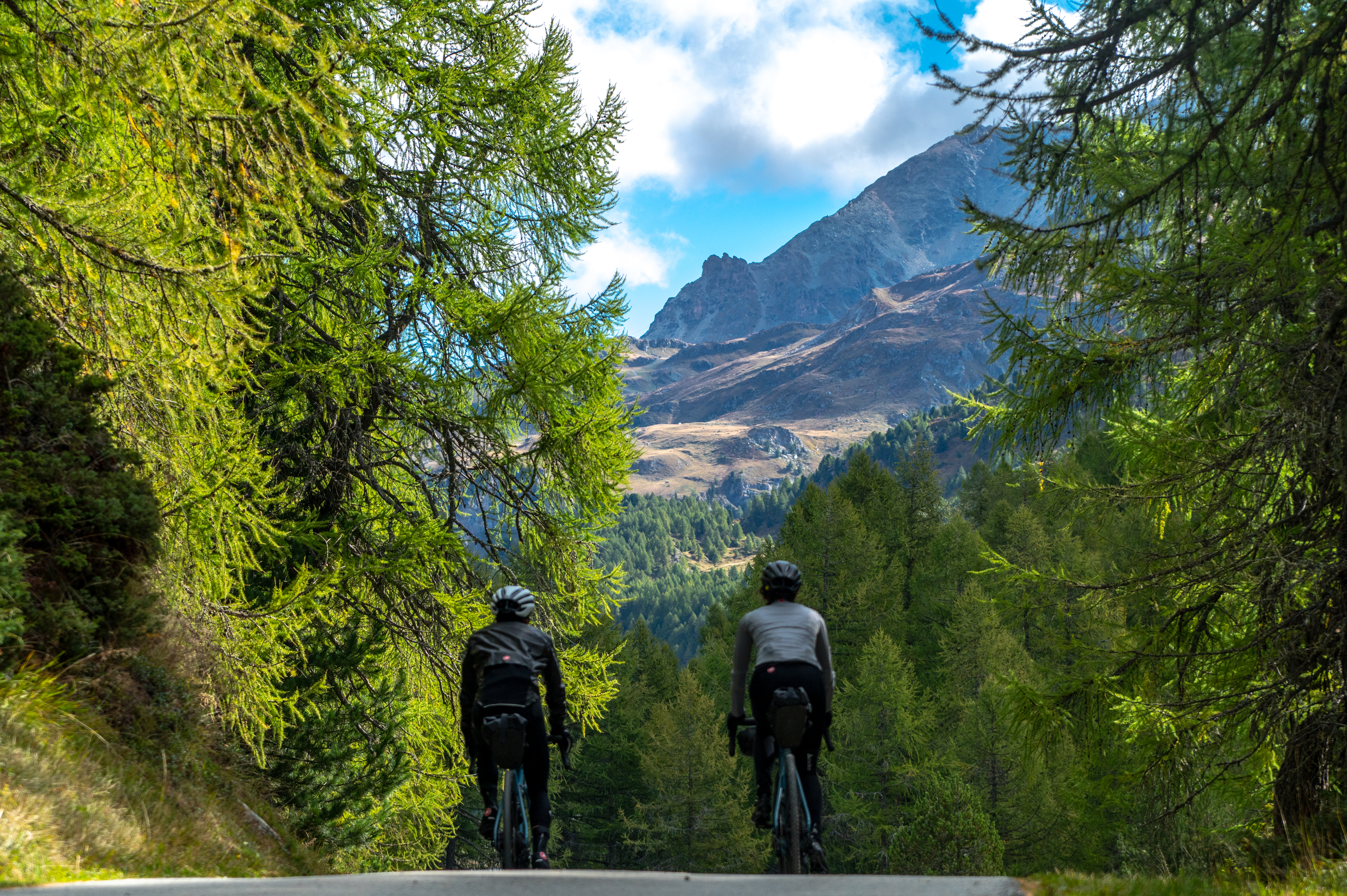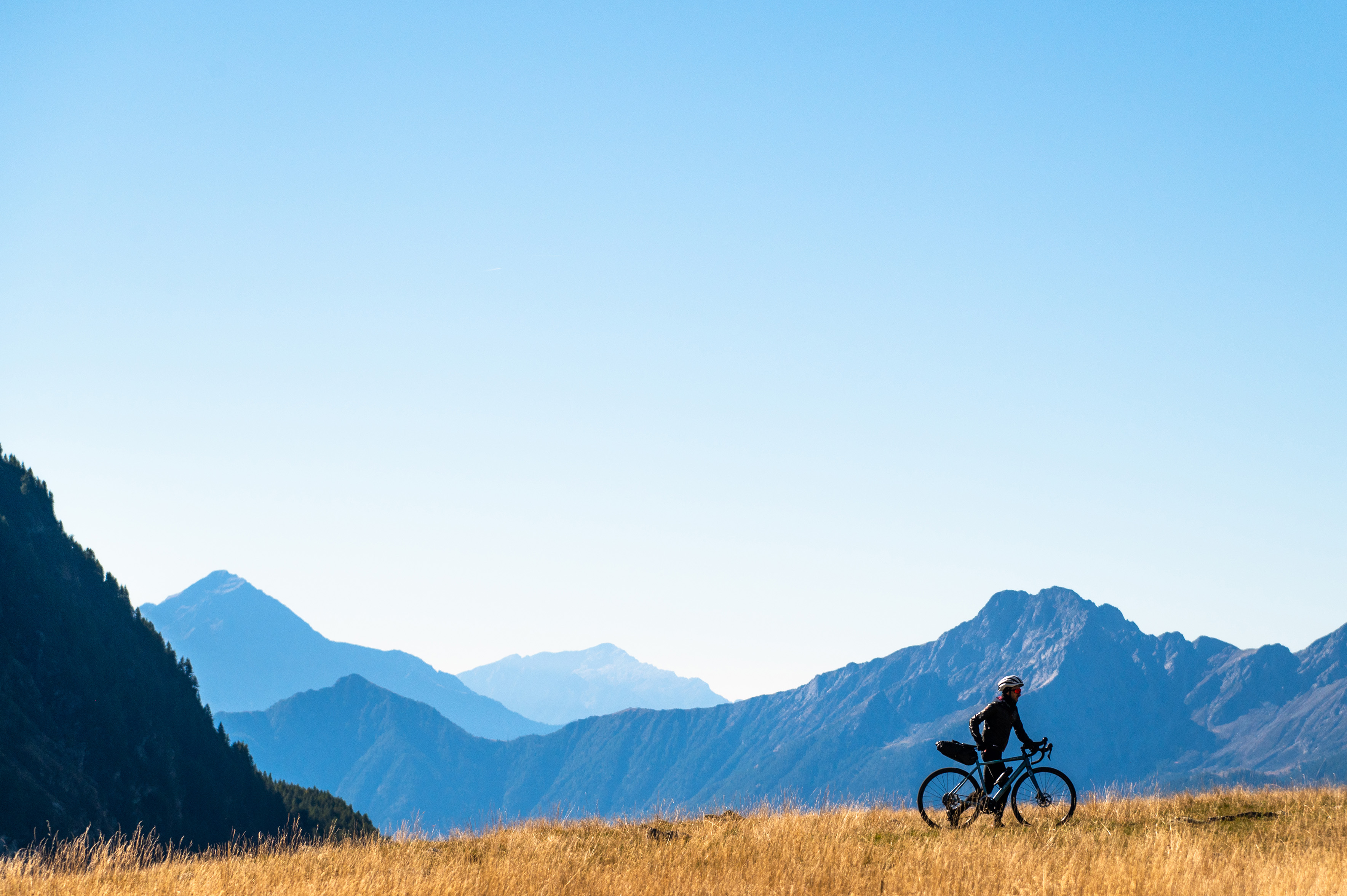 We all know it — cycling often leads to having one’s head in the clouds. And for these two days, we will almost literally have our heads in the heavens. They will be two demanding, beautiful and emotionally charged days. The first stage takes us from Chiavenna to Sils Maria, in Swiss territory: 100 kilometres with about 2,000 metres of altitude gain. The second, tougher and with more elevation, will take us to Alpe Motta — a stage finish of the 2021 Giro — and the village of Montespluga with its famous dam: only 90 kilometres in total, but with about 3,000 metres of ascent. Bike: gravel. So as not to miss anything these places have to offer.