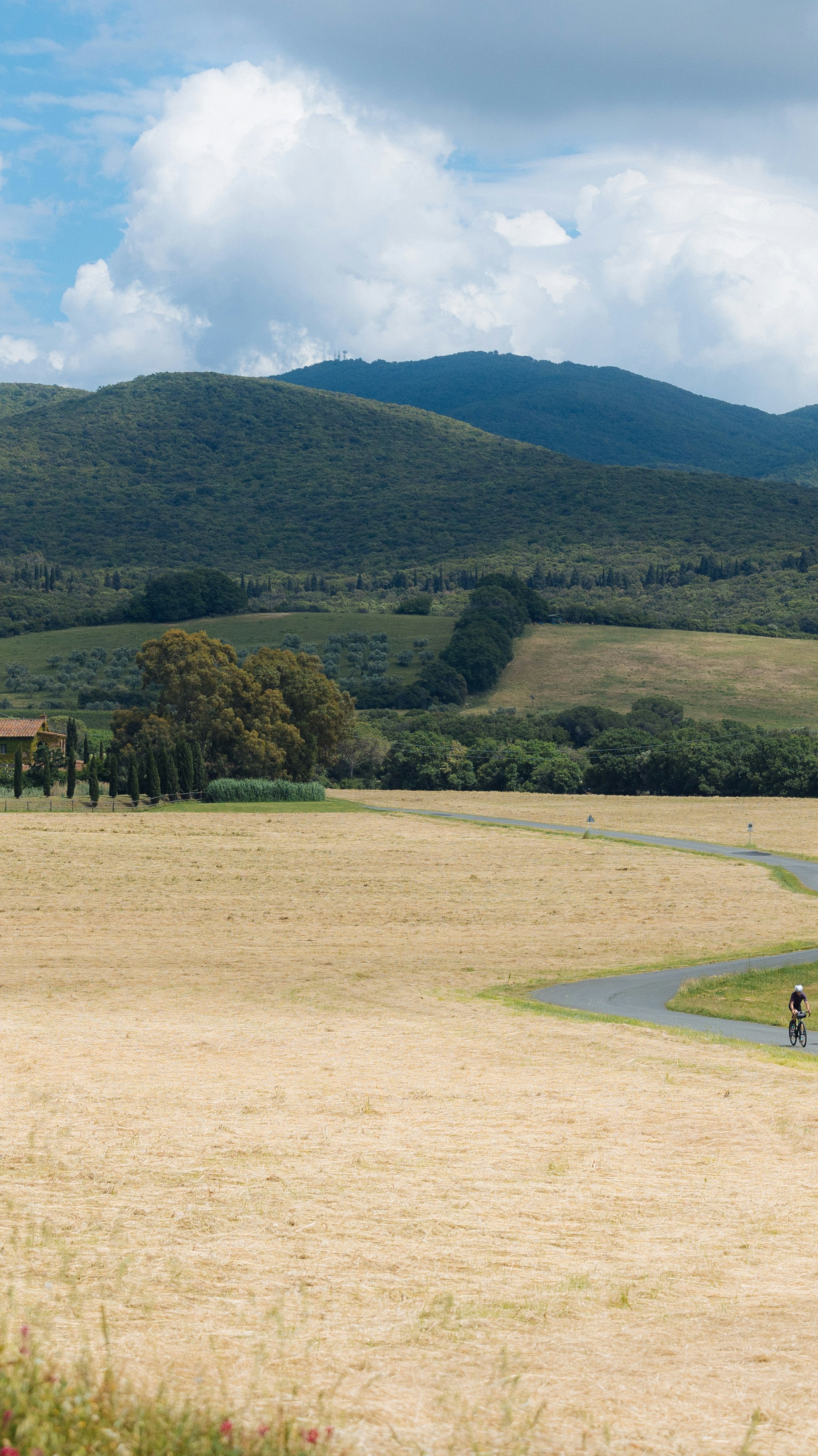 Every now and then the road gets bouncy. The remains of an ancient Roman road make the ride feel like floating on the pebbles in Pompeii. It is likely that Bibbona and its surroundings have been inhabited since the Villanovan civilisation, but Etruscans & Co. hardly chose the paving with modern bicycles in mind. Yet, the network of roadways, now silver-coloured, now reddish, among which one can get lost, seems to have been made especially for gravel bikes. In the Macchia della Magona they have tidied up the vegetation, the paths are well kept, ‘and soon we will also come across some wild boars,’ says Chiara, reassuring me that they are in a fenced area and anything but dangerous.
