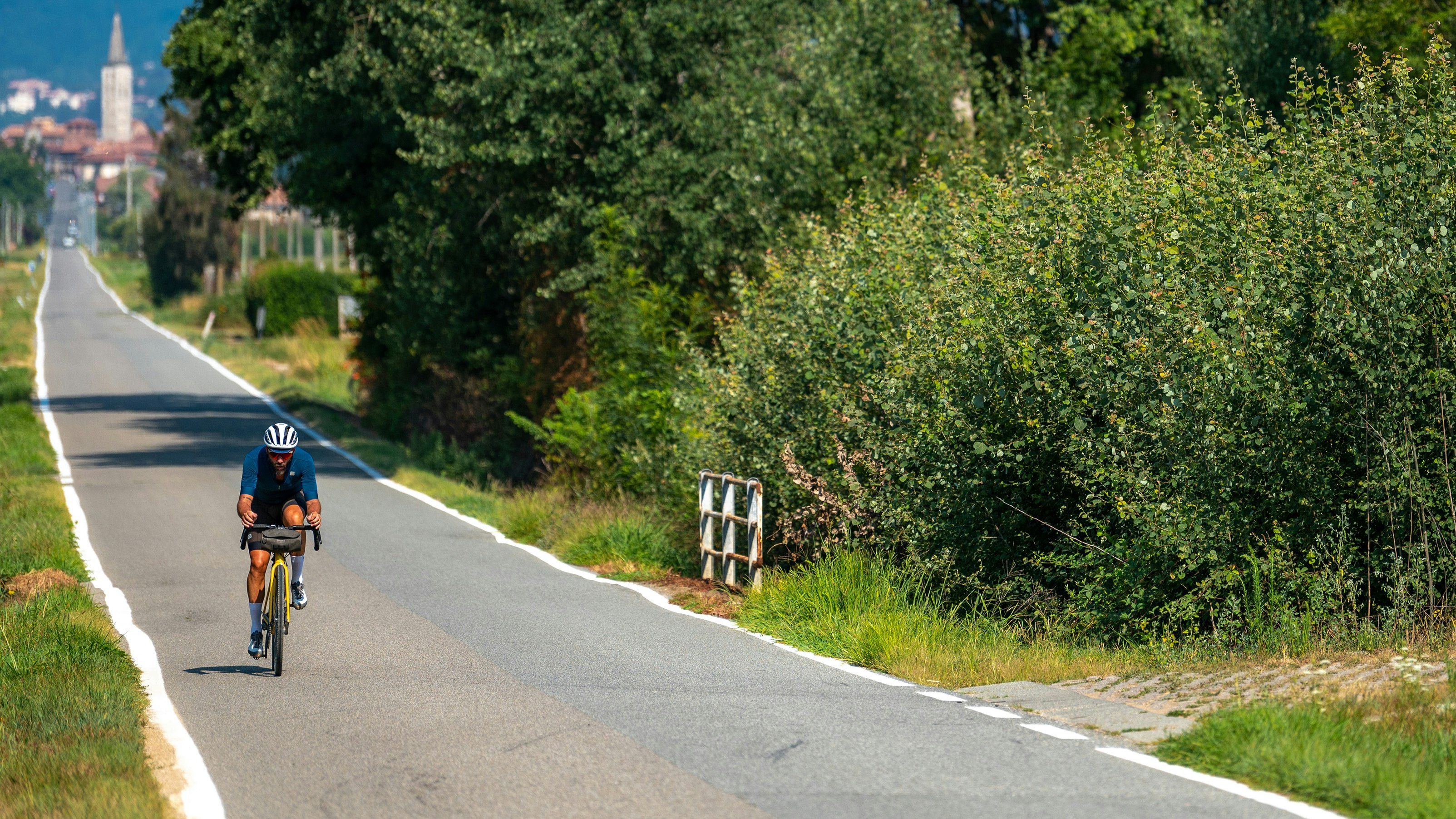 Per chiudere il nostro anello preferiamo scendere lungo il percorso del vecchio tramvai per Biella, oggi dismesso, che seguiamo fino al Favaro. Un percorso, perfetto per la gravel, che sembra svolgersi in uno scenario da trenino elettrico: ponti in pietra, una curva elicoidale e pure una galleria. Dal Favaro ci stacchiamo per raggiungere il parco sulla collina della Burcina a Pollone. Noi lo abbiamo attraversato in estate, su stradine sterrate che scendono sul bel paese di Pollone, ma l’ideale è percorrerlo in autunno o, meglio ancora, a maggio, quando i rododendri sono fioriti.