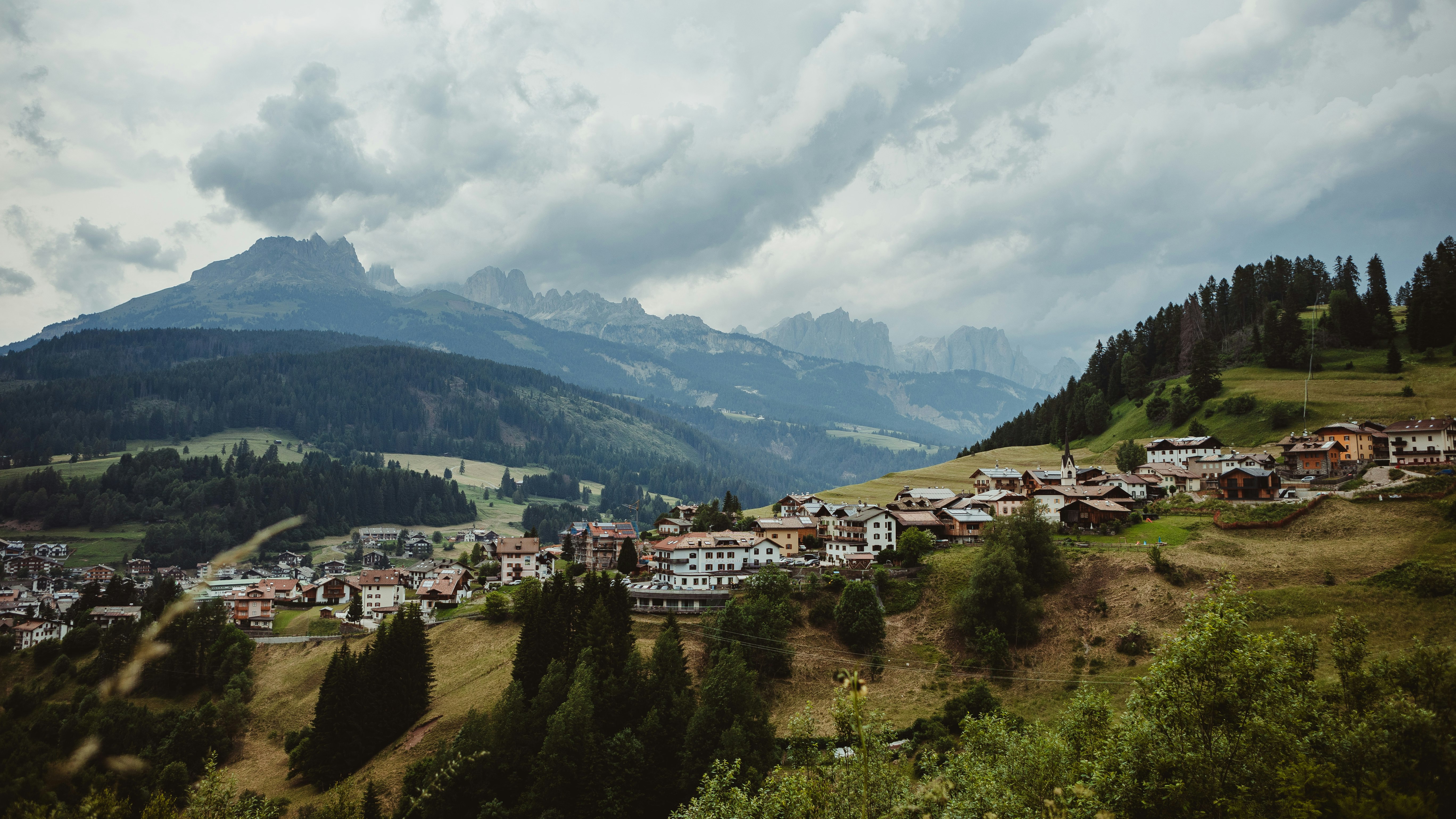 Facciamo un giretto per il centro, dove mi trovo davanti a un piccolo hotel che mi ricorda tanto il Belvedere, l’albergo con finiture rosse che si trova su un tornante del passo della Furka, in Svizzera. Questo di Moena si chiama Hotel Corona e, al posto del rosso elvetico, ha tapparelle, tende e persiane verdi, dello stesso verde dei prati della Val di Fassa che abbiamo intorno. Per dissimulare l’effetto-Furka, Donato ed io proviamo a girarci intorno ma il risultato è solo quello di farci fischiare nelle orecchie da un vigile molto fiscale che ci richiama a rispettare i sensi unici.