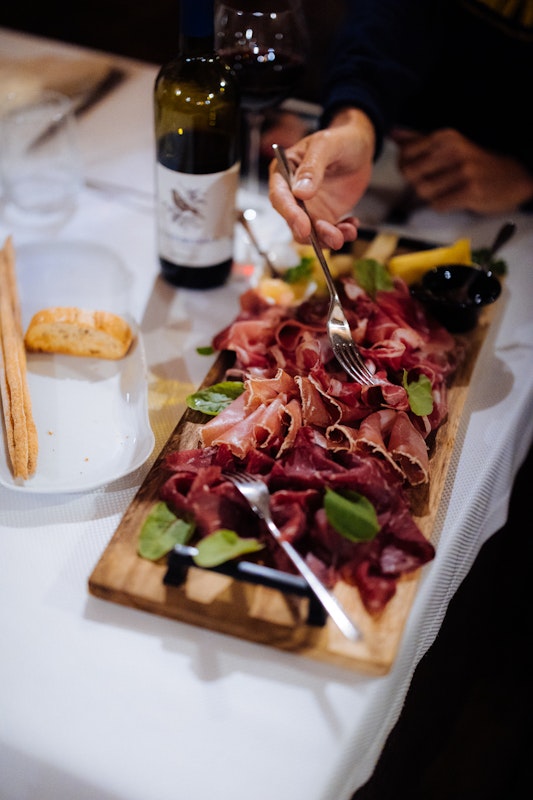 La sera, a Ponte di Legno, ci fermiamo in una trattoria: sembra che aspetti proprio noi. Tra pizzoccheri fatti in casa, funghi e selvaggina con polenta e dell’ottimo Rosso camuno, recuperiamo tutte le calorie spese e forse anche qualcosa in più.