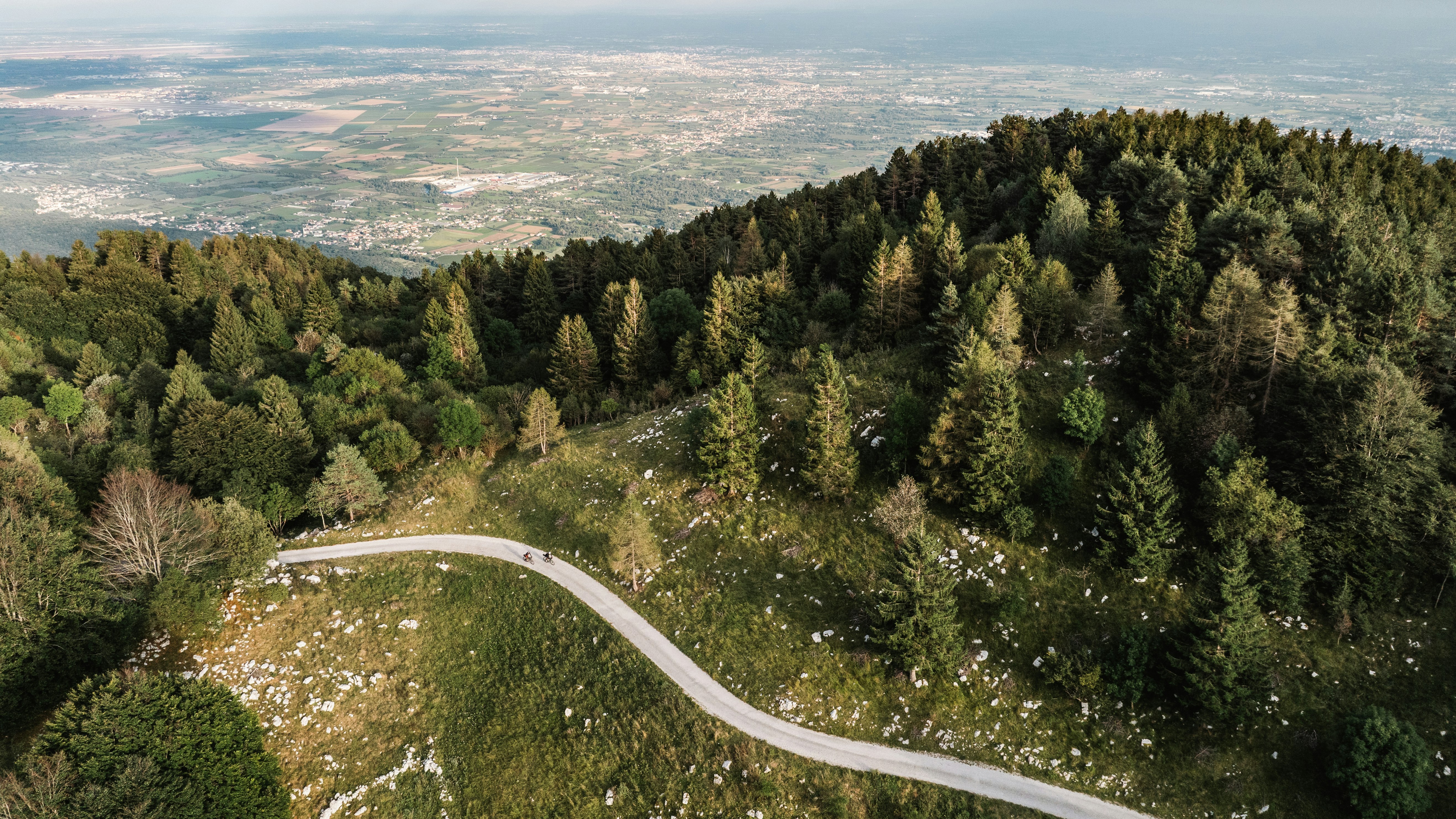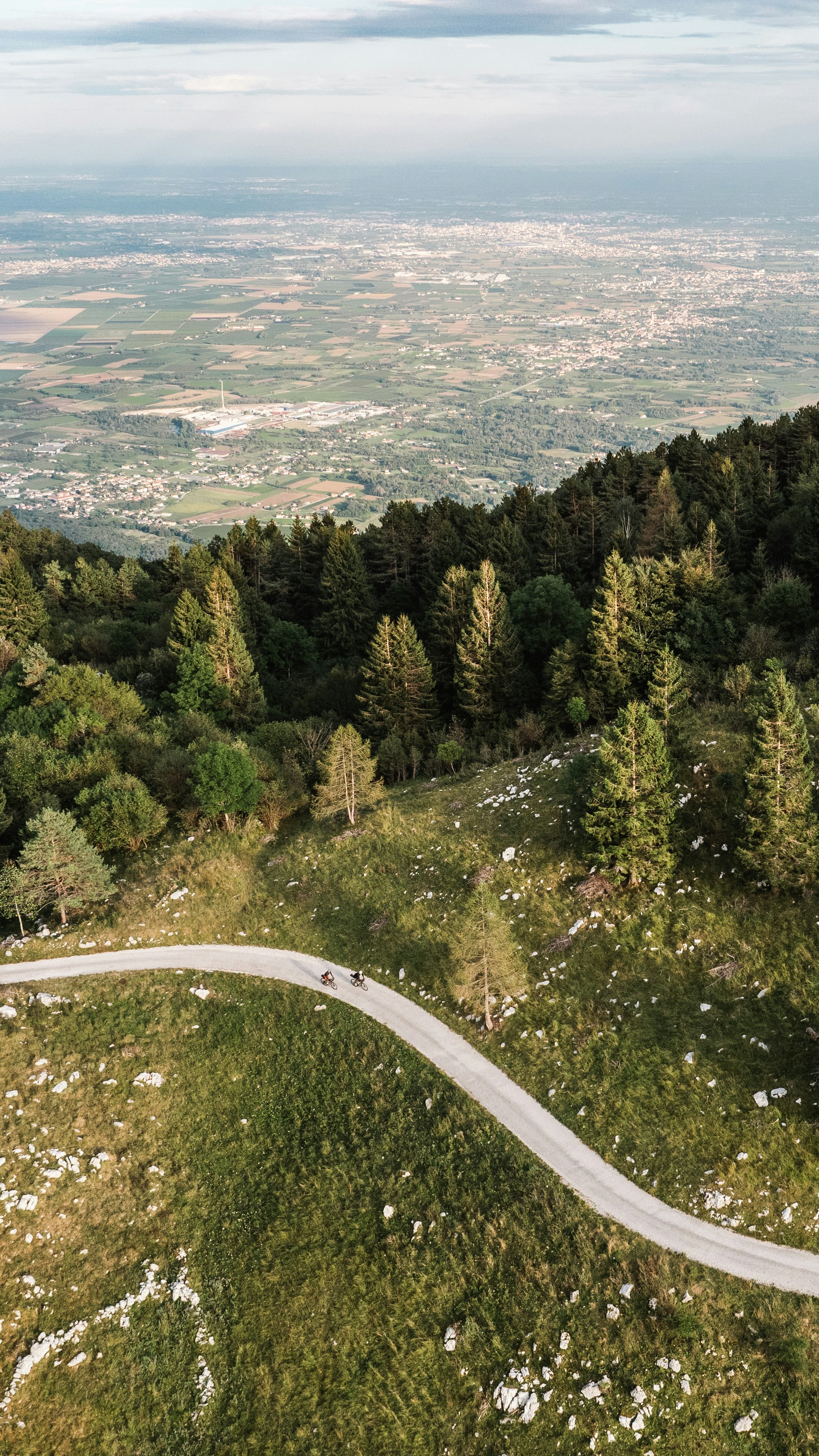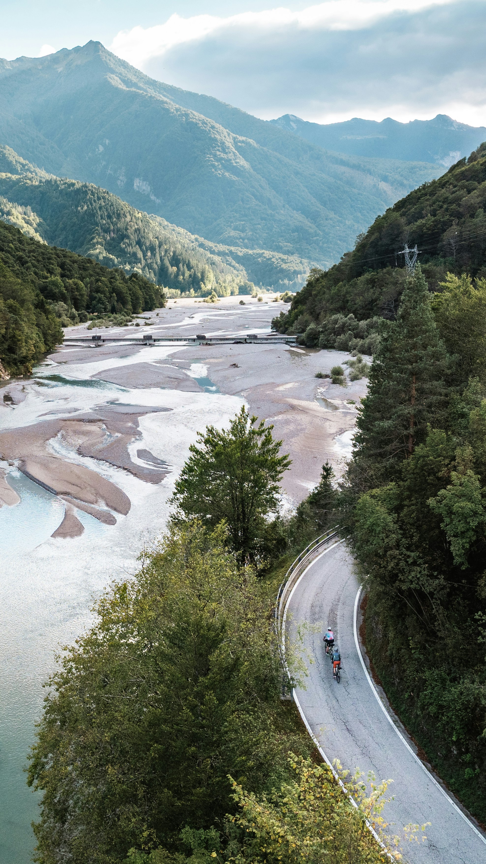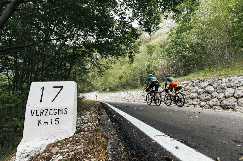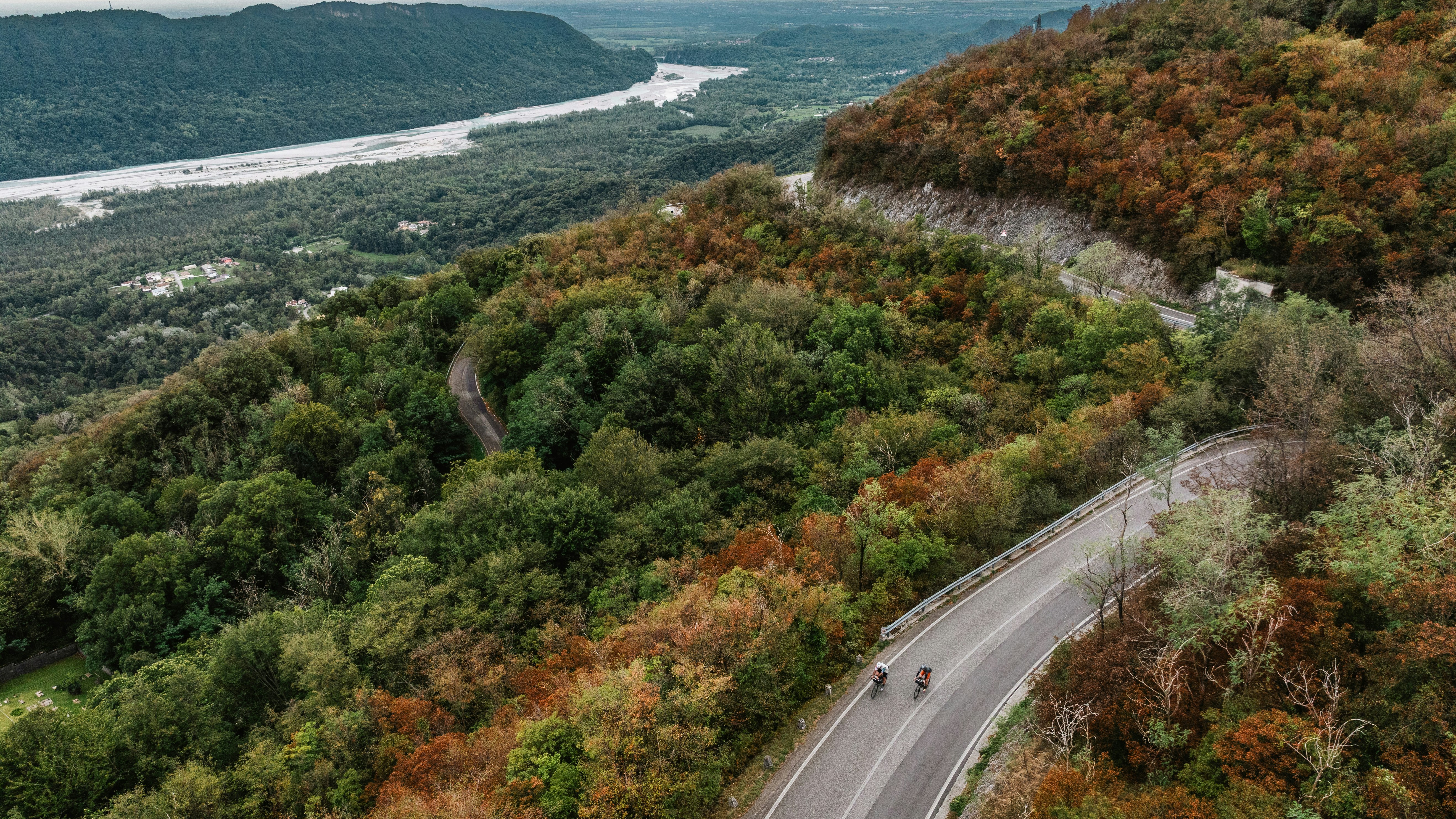 A Forgaria nel Friuli attacchiamo la prima salita del viaggio, una quindicina di chilometri alla media del 6% verso Monte Prat. I tornanti hanno tutti un nome come nelle grandi salite alpine, Volt di Mont, Volt da Las Beorchias, Volt di Bedoi, Volt dai Tisins, e così via, fino ai 900 metri esatti del passo. Capiamo di aver scelto la traccia giusta perché né salendo né scendendo dall’altro versante incontriamo una singola auto, neanche una moto, un motorino, niente, e così sarà anche nella breve risalita della Val d’Arzino, dove dormiremo stasera.
