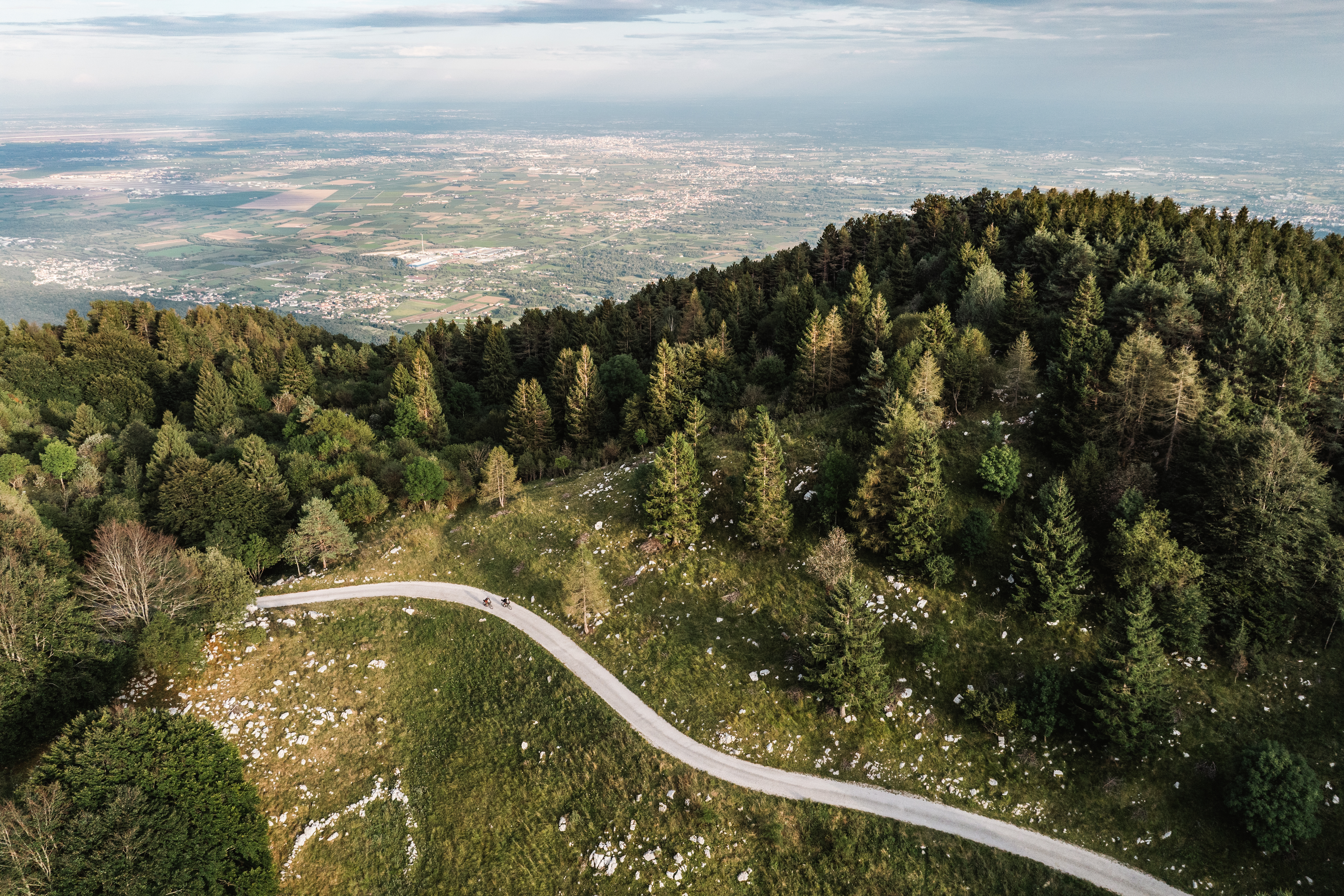 Ci fermiamo a un tornante poco sotto Malga Campo Budoia. Eccolo lì, l’universo Friuli, in tutta la sua sconfinata molteplicità. La pianura si srotola davanti a noi per le famose sessanta miglia. Laggiù in fondo luccicano la laguna di Marano e il golfo di Trieste. Alla nostra sinistra si alzano le Alpi Giulie con il Monte Canin, le Prealpi con il Matajur e il Kolovrat e poi via via fino alla fine del mondo, si potrebbe pensare.