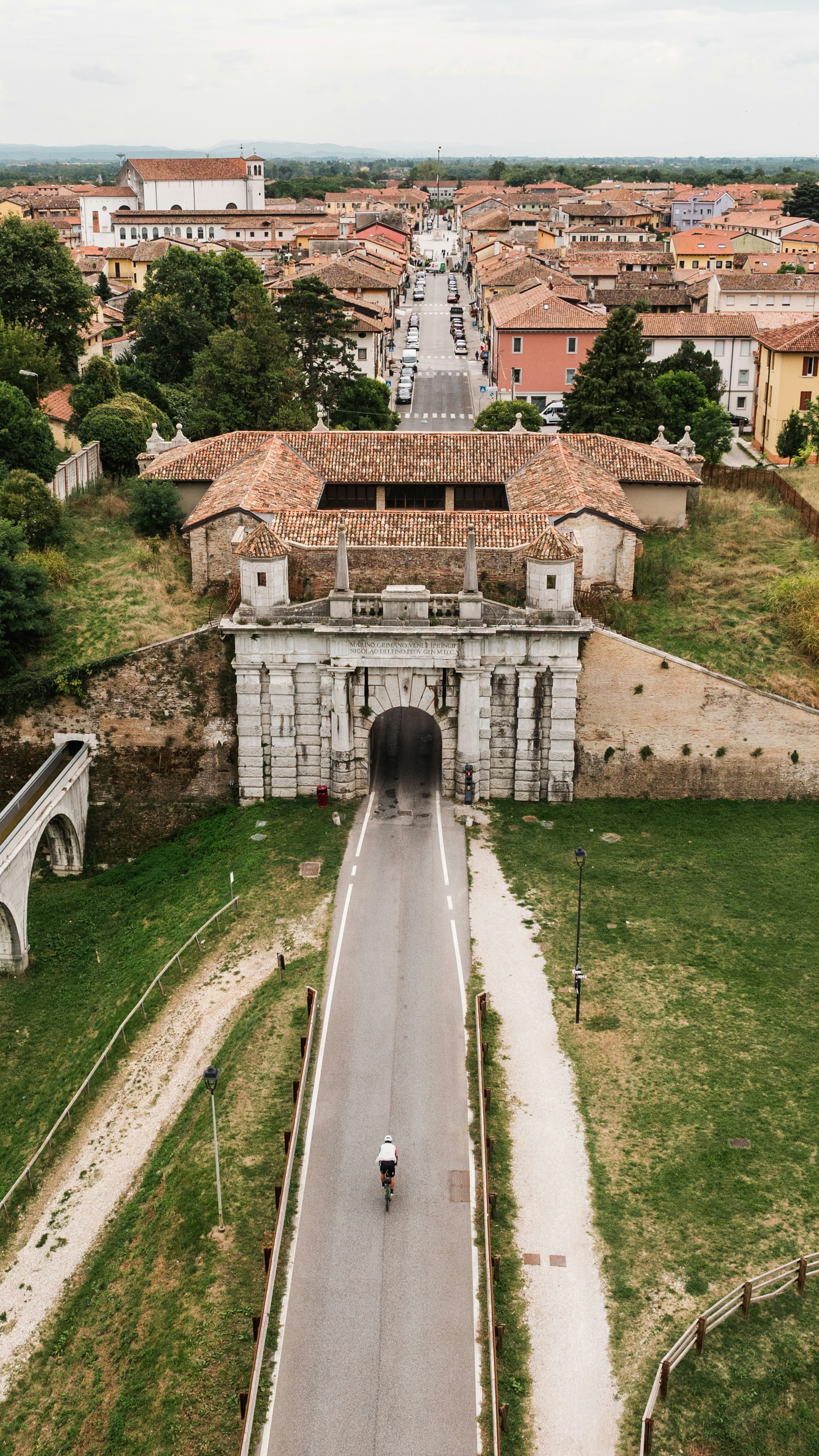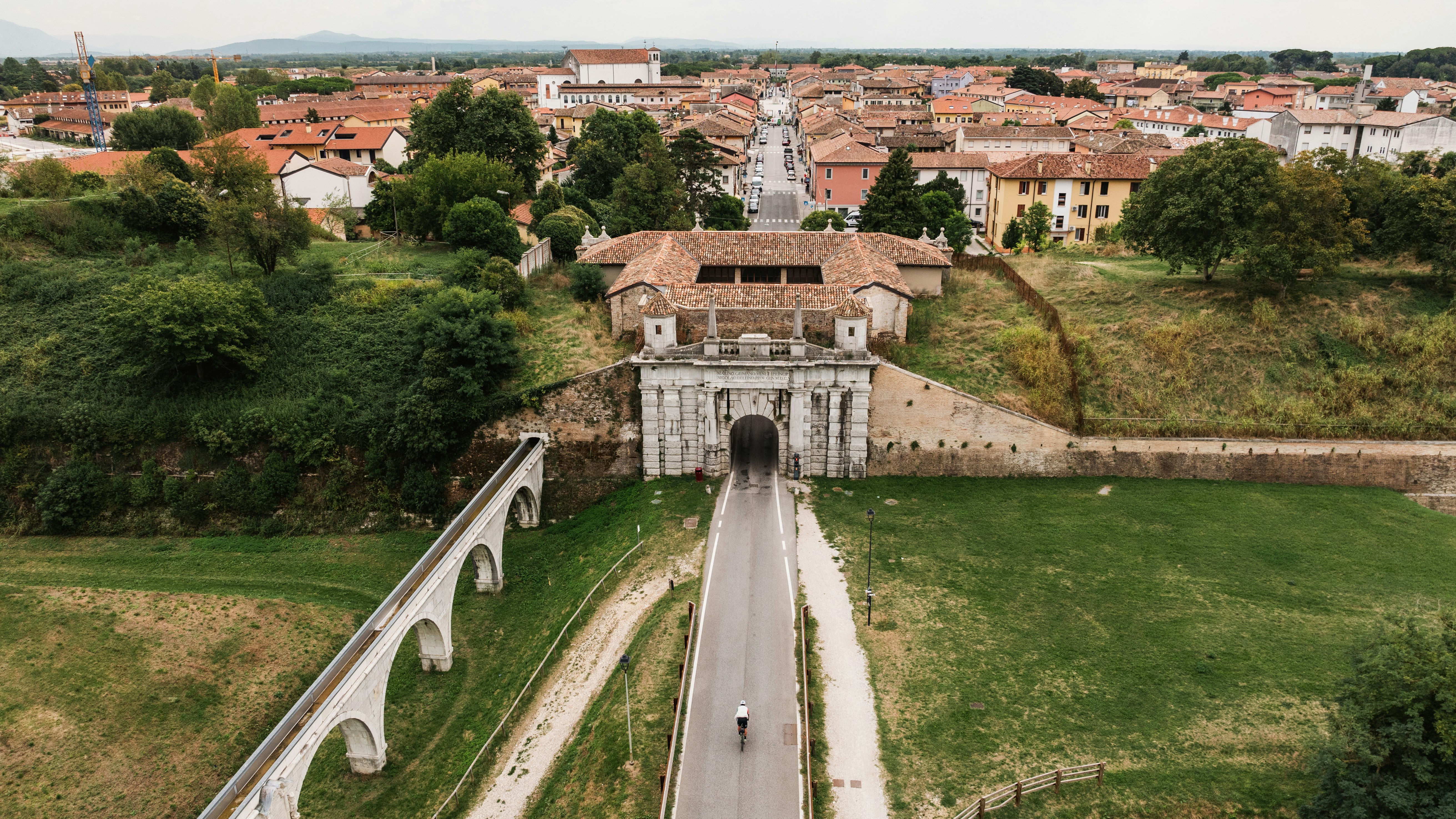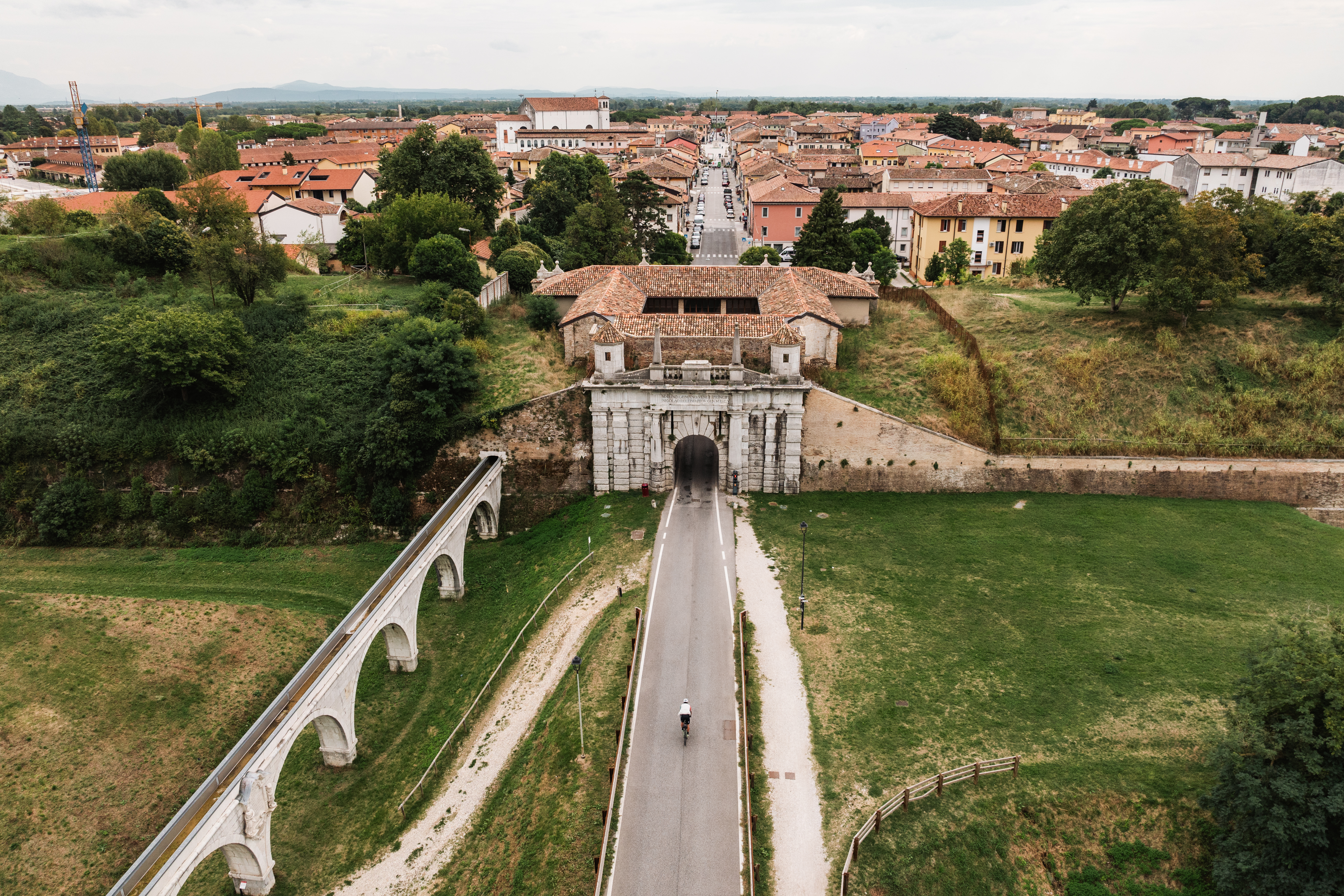 Poi ancora strade bianche in mezzo ai campi di granturco e soia, argini di fiumi, la stella a nove punte di Palmanova, meraviglia architettonica veneziana.