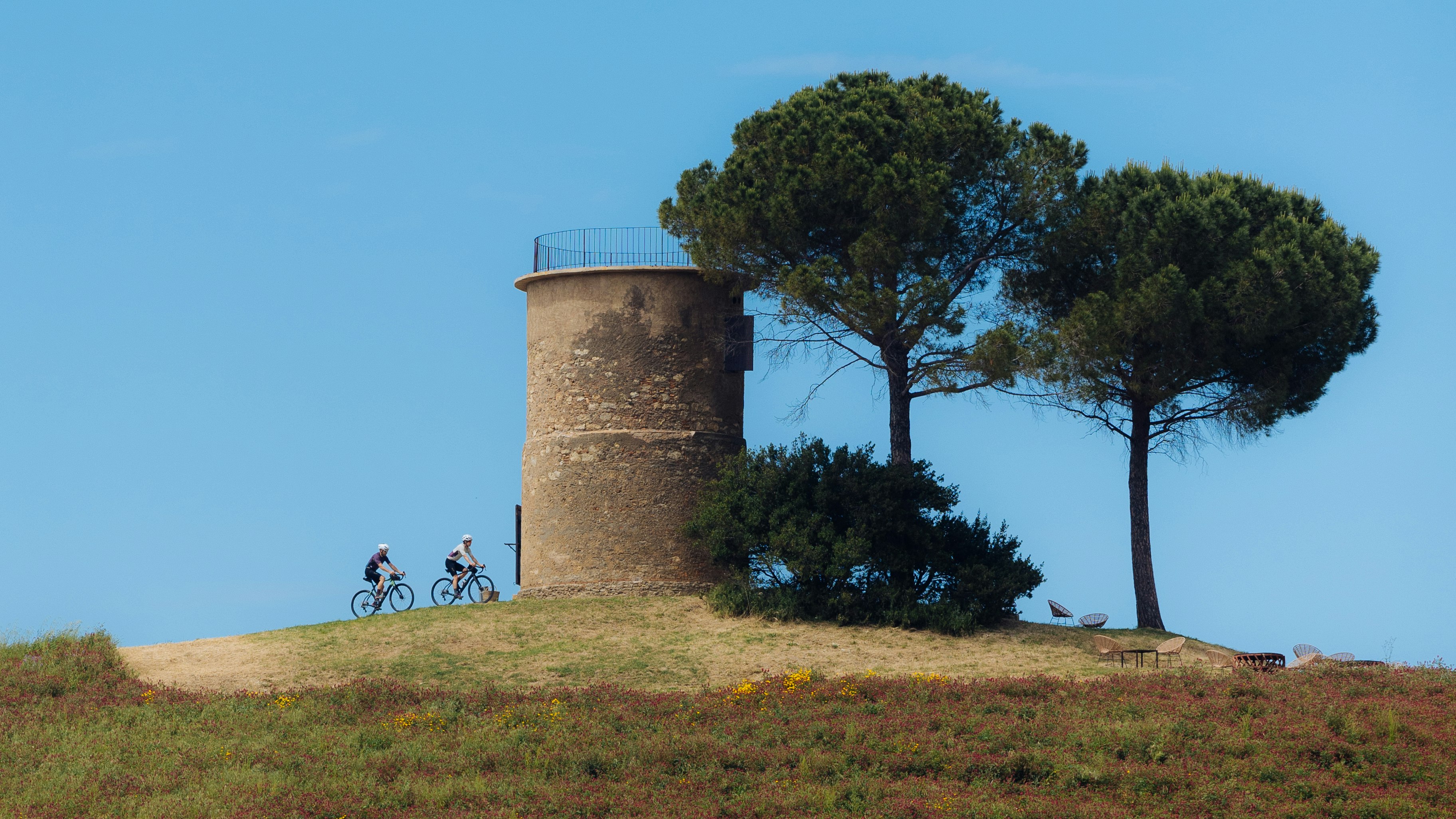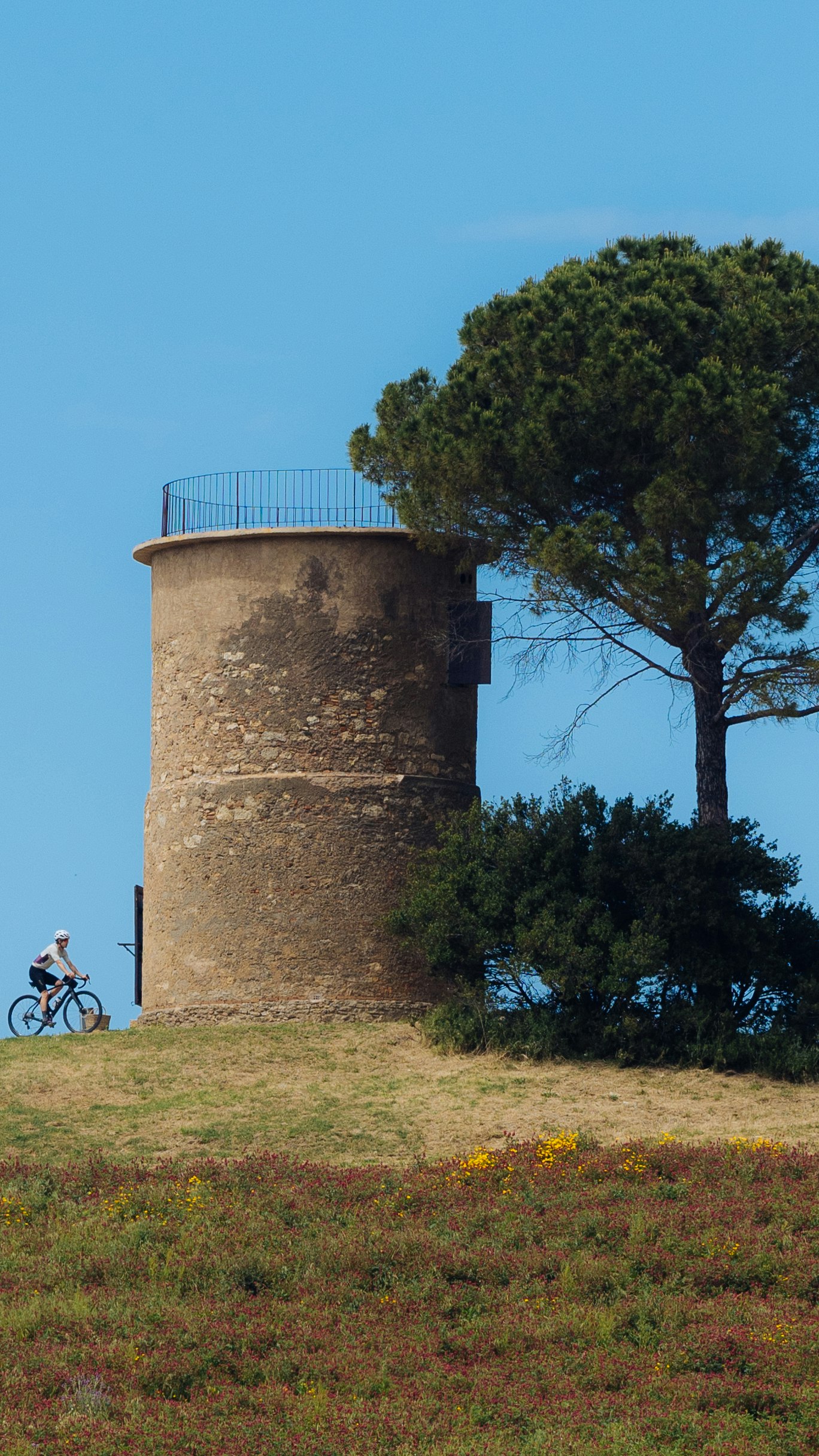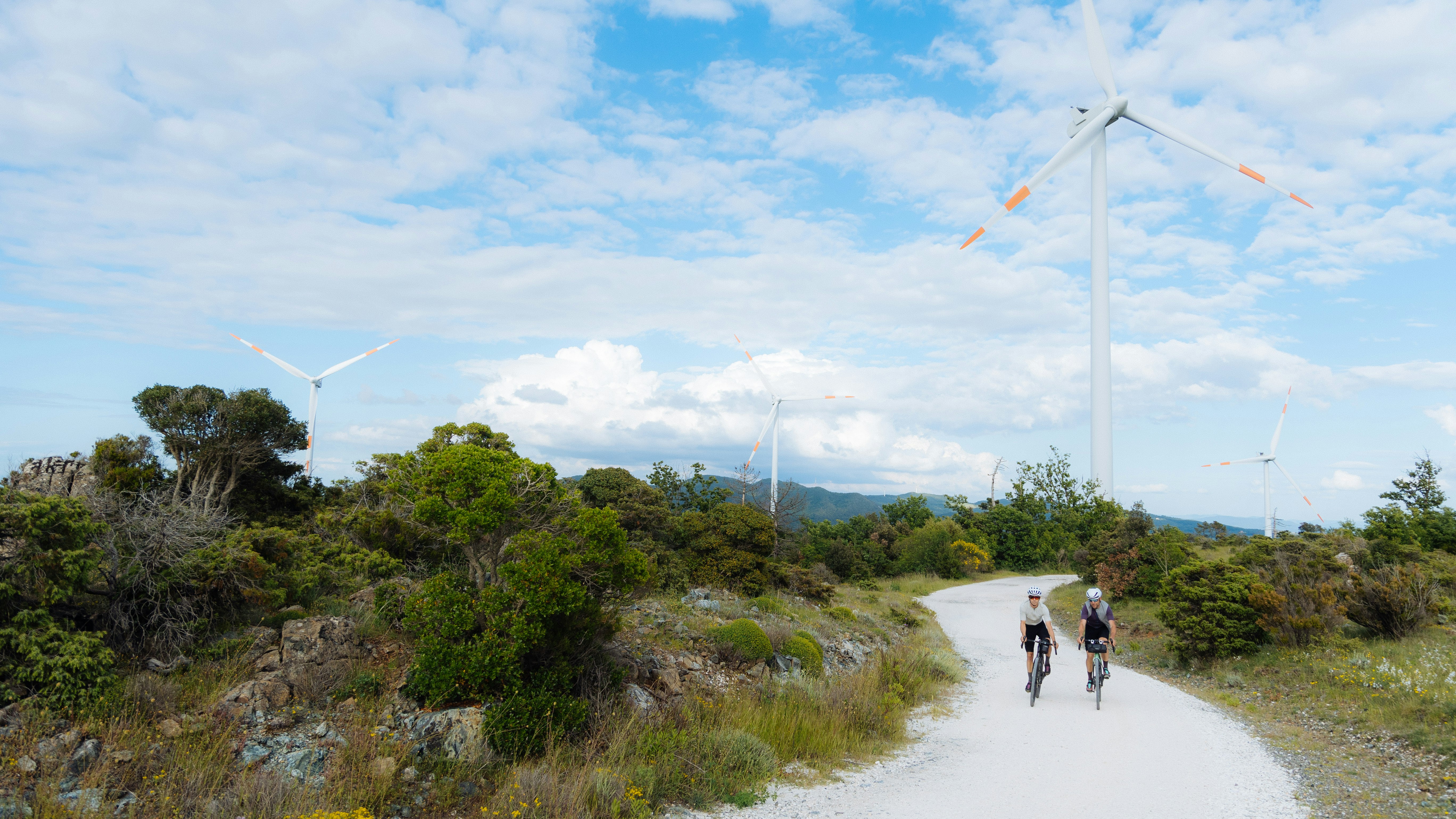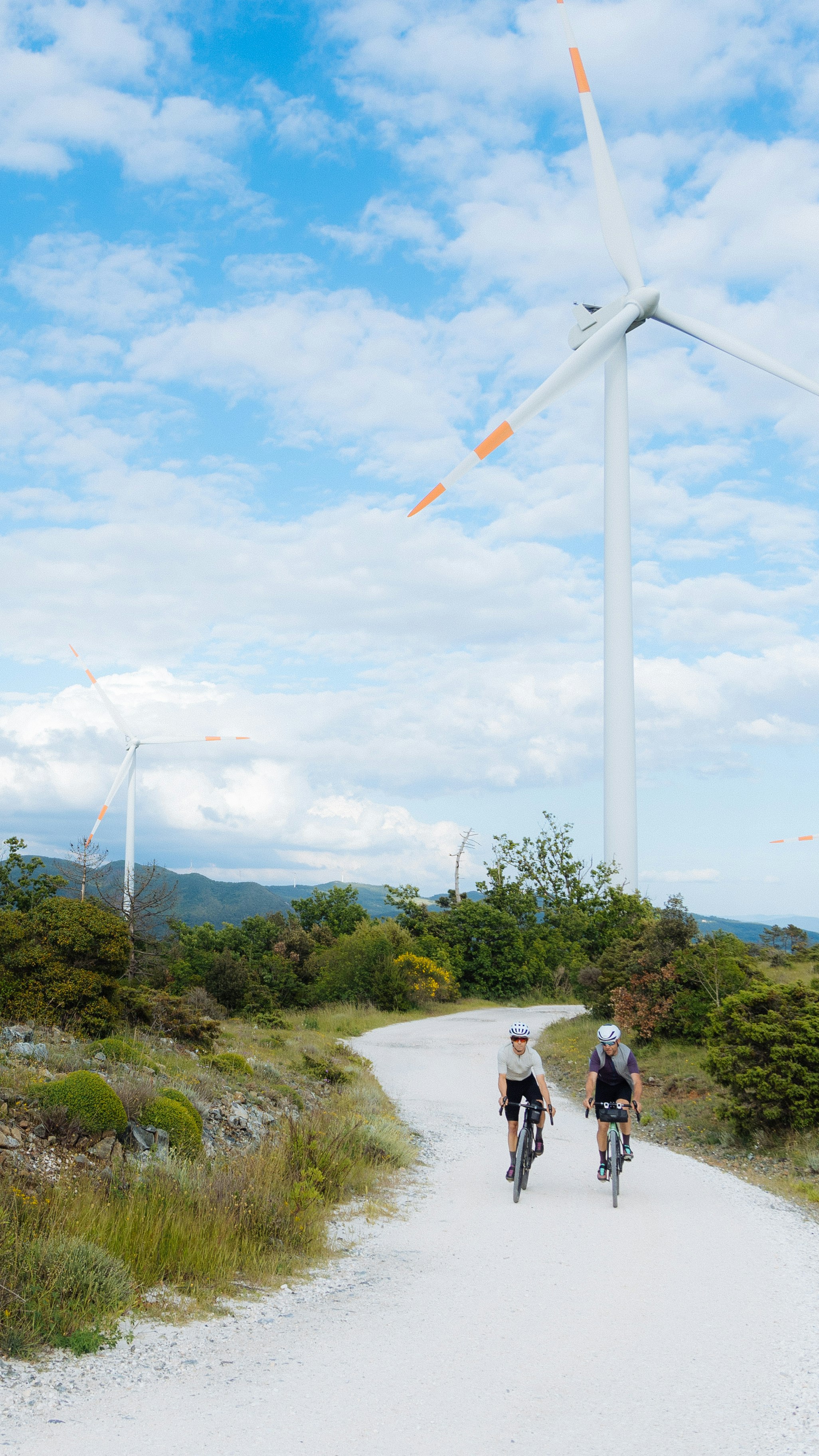 A vista d’occhio, sui pendii circostanti a dove pedaliamo, geyser bianchi puntellano il verde dei boschi. Le zone intorno a Pomarance, infatti, vengono sfruttate per la produzione di energia geotermica. Di tanto in tanto, dobbiamo guadare i botri, canali di scorrimento delle acque piovane che compaiono improvvisamente nelle campagne e nei boschi. Capita che Chiara o Frank indichino a valle dicendo: «Ecco il mulino!», intendendo un mulino a vento situato sul cucuzzolo di una collinetta e divenuto uno dei simboli di Bibbona. In realtà, credo vogliano dire: «Ecco casa!».